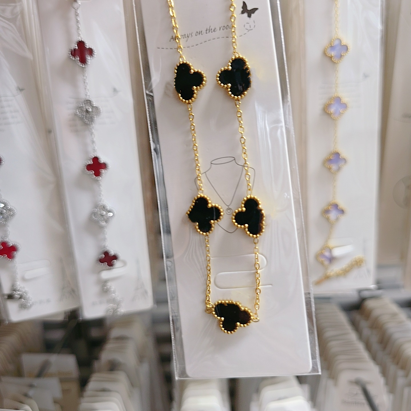 Color: Five-flowered four-leaf clover necklace (gold black)