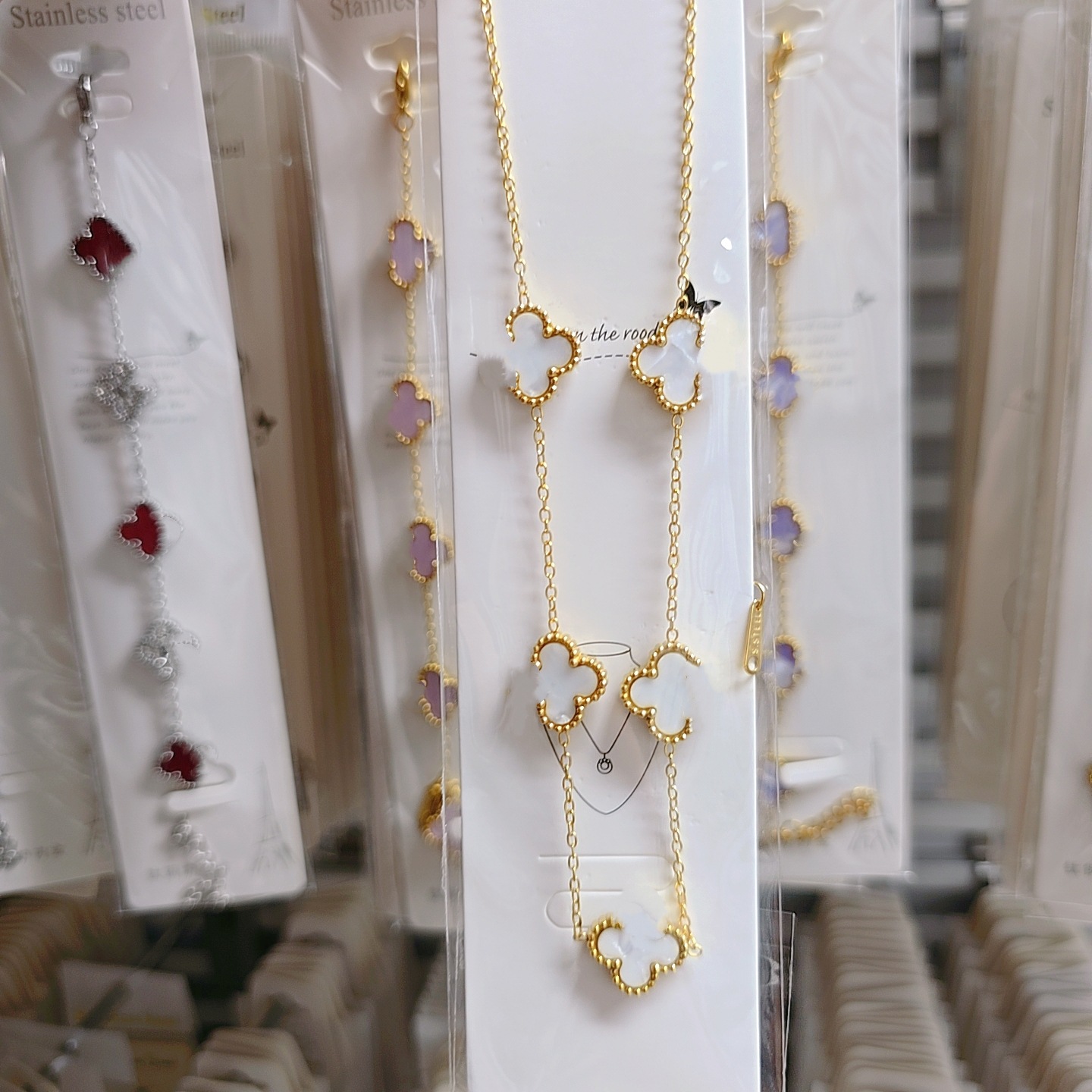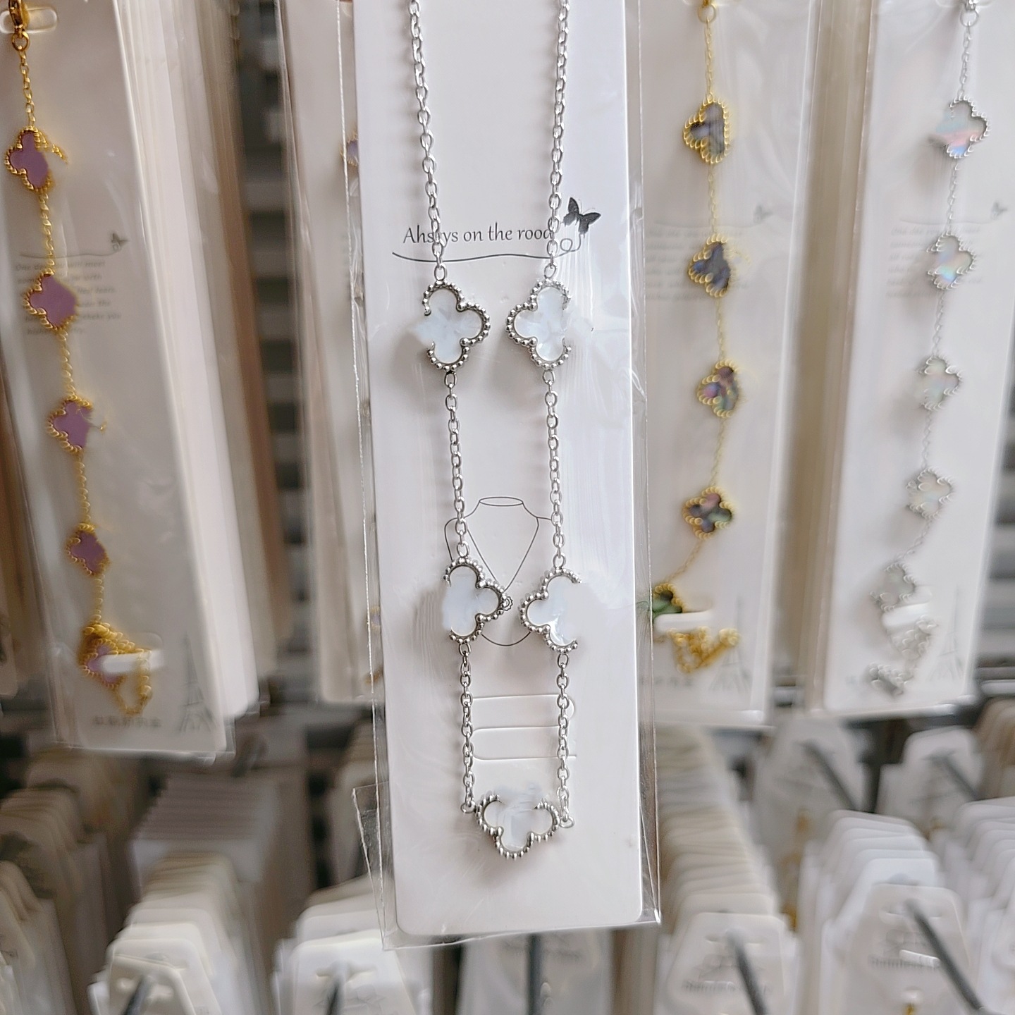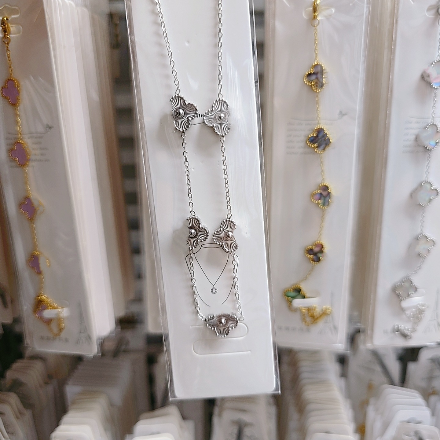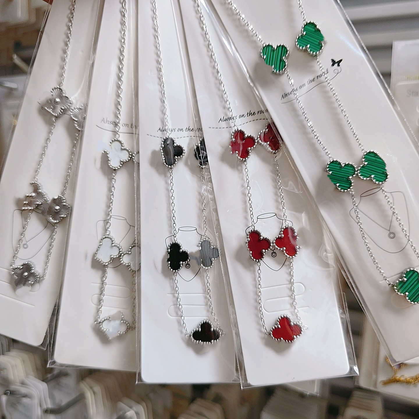 Color: Five-flowered four-leaf clover necklace (steel color white)