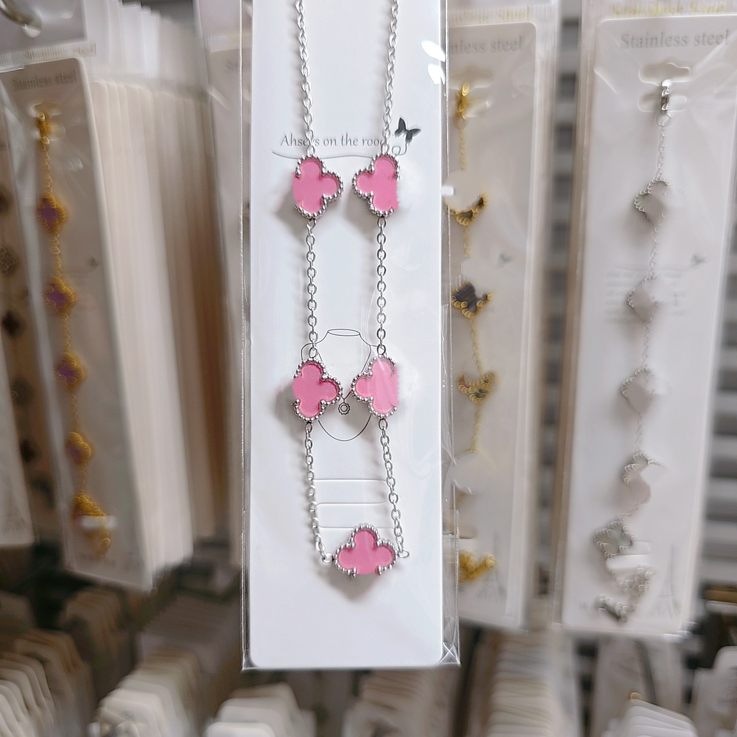 Color: Five-flowered four-leaf clover necklace (steel pink)
