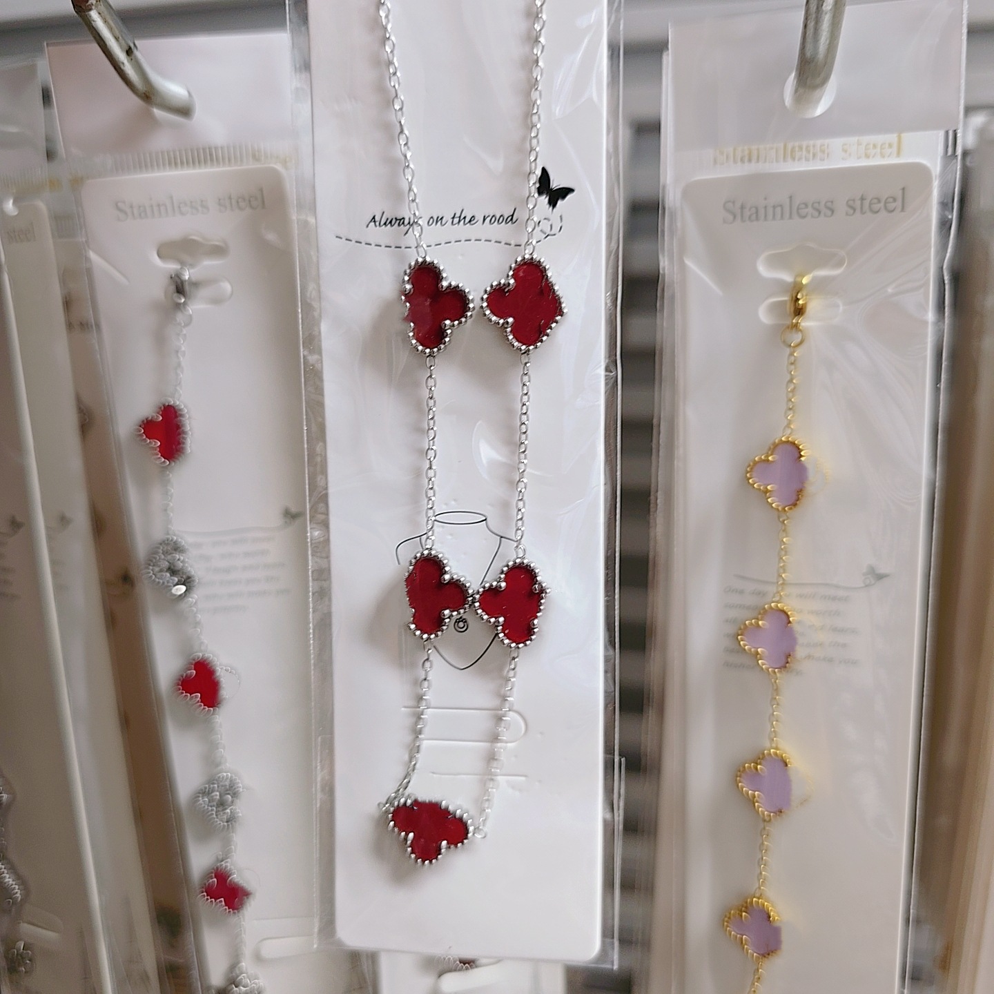 Color: Five-flowered four-leaf clover necklace (steel color burgundy)