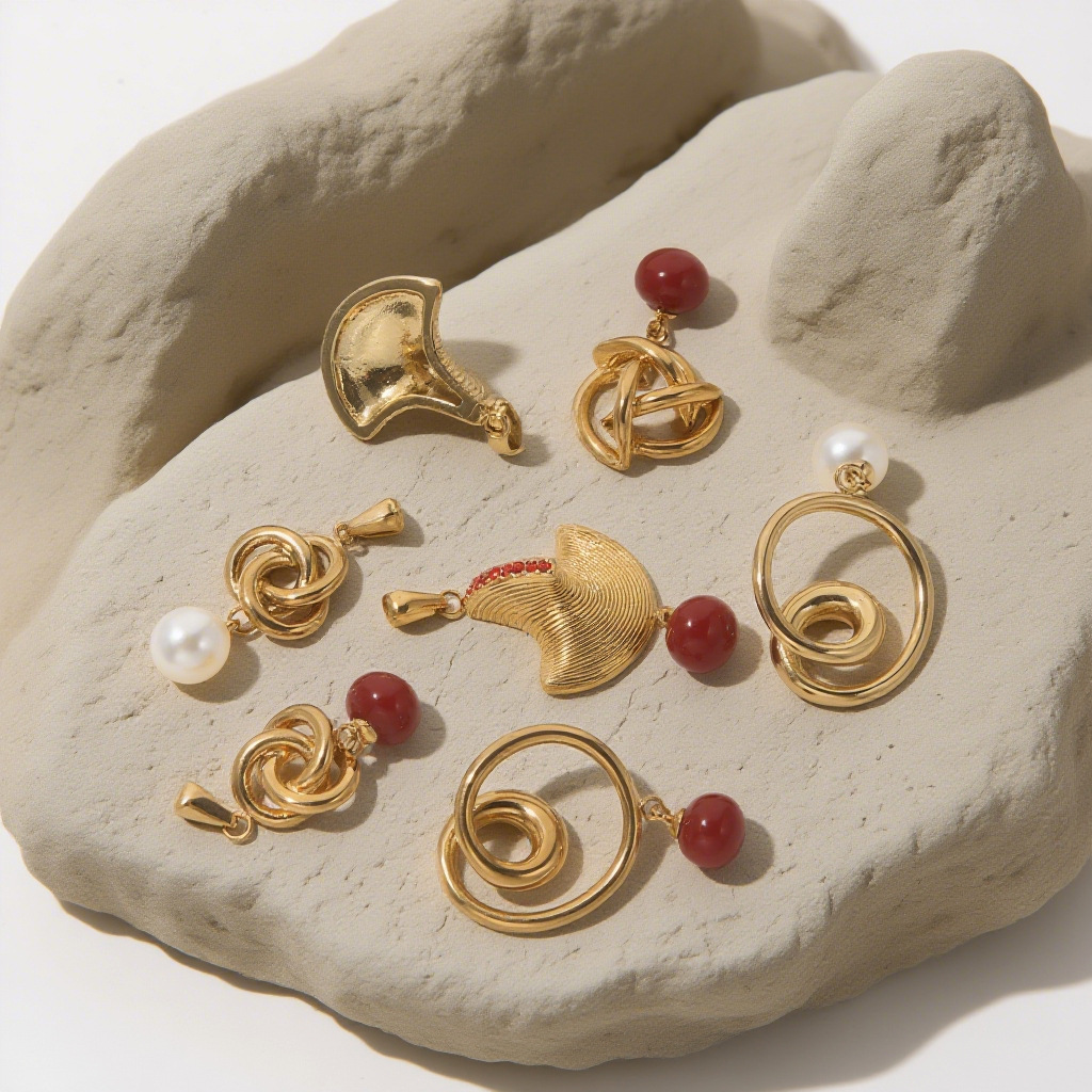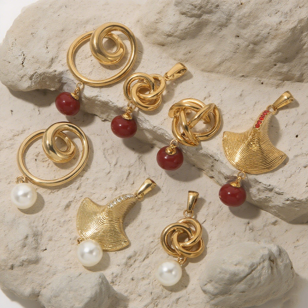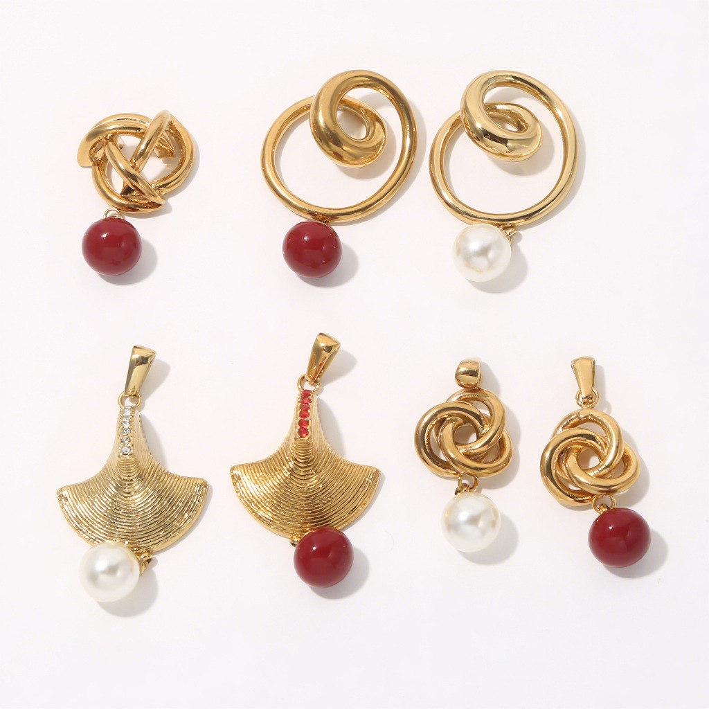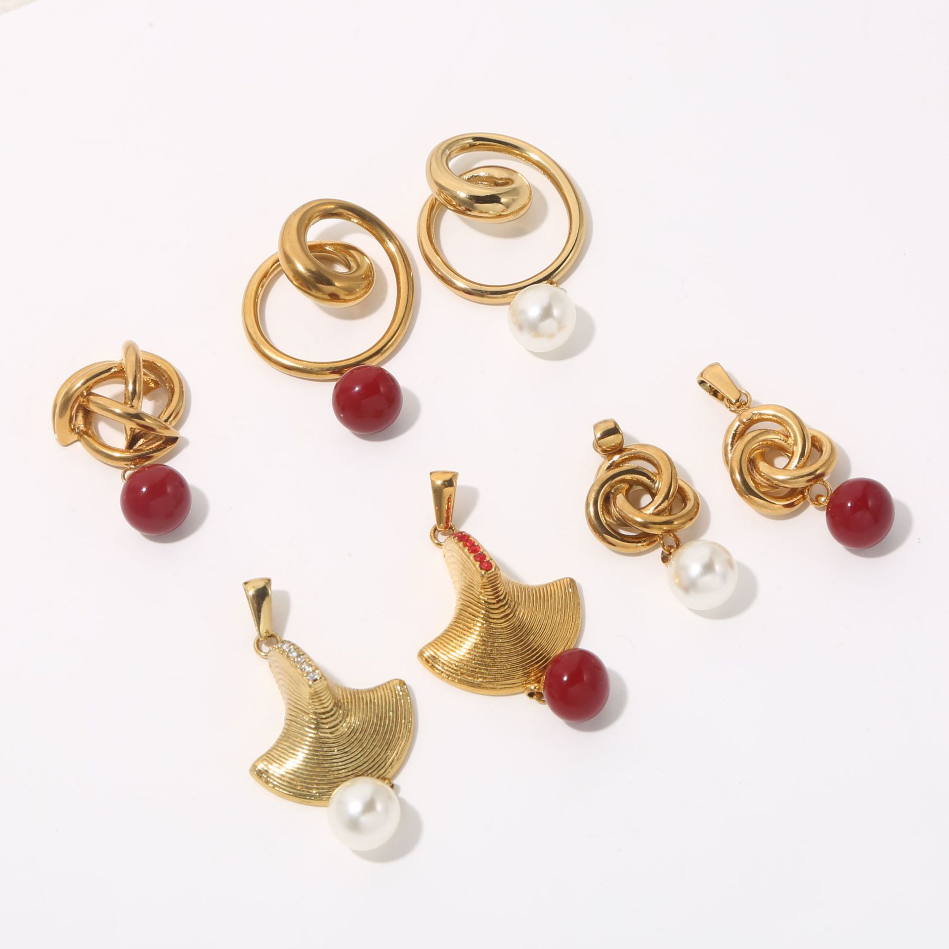Fashion Chinese Knot Mosquito Coil Stainless Steel Pendant Red White Pearl Mix and Match Variety Shape Bracelet Necklace DIY Accessories