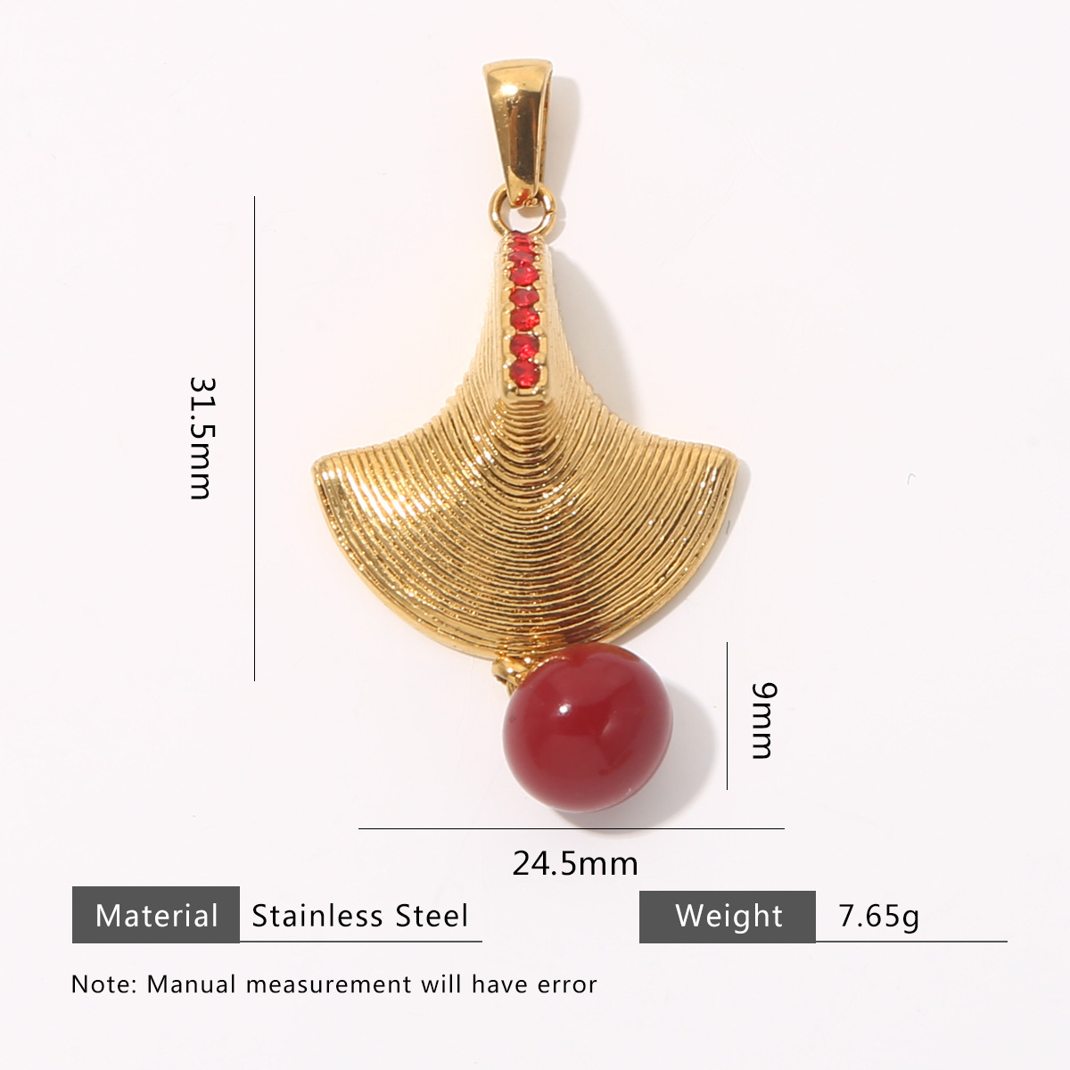 Fan-shaped red pearl + melon seed buckle