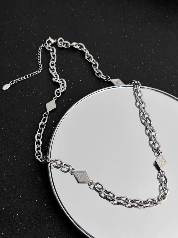 Jackson Wang Style Patchwork Sweatshirt Titanium Steel Starburst Necklace Men's Trendy Collarbone Chain Sweet Cool Hip-Hop Chain Accessory Women