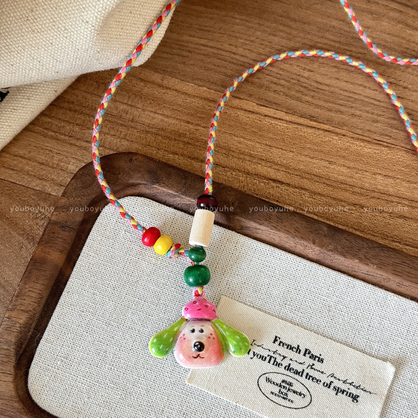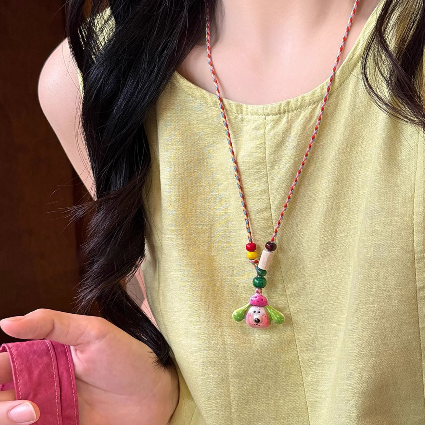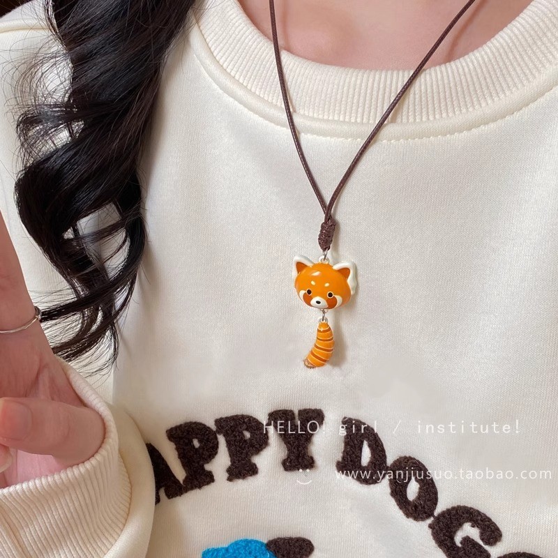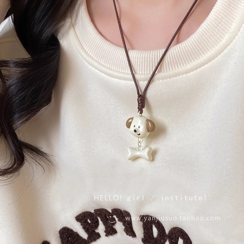 Colorful Cartoon Puppy Necklace, Unique Niche Design Pendant Necklace, Cute and Versatile Braided Rope Necklace