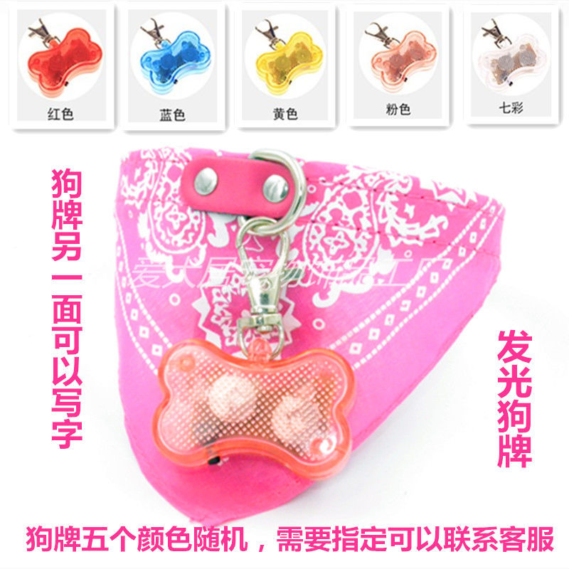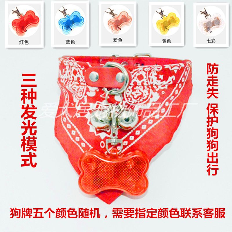 Color: Red bell-less triangle scarf + luminous dog tag (random)