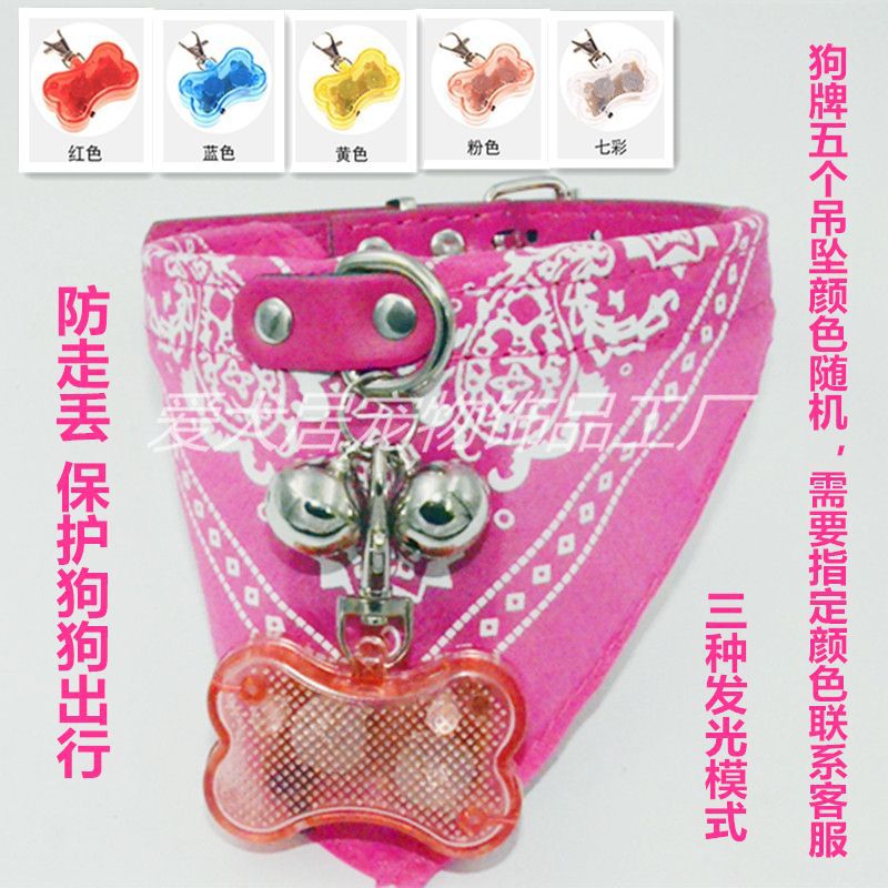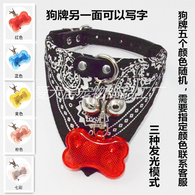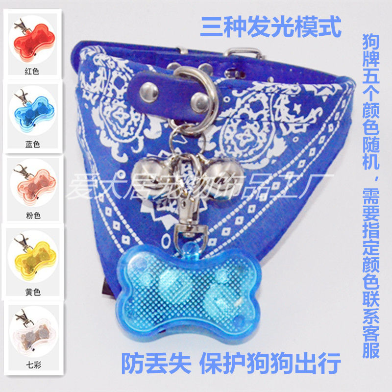 Color: Blue bell-less triangle scarf + luminous dog tag (random)