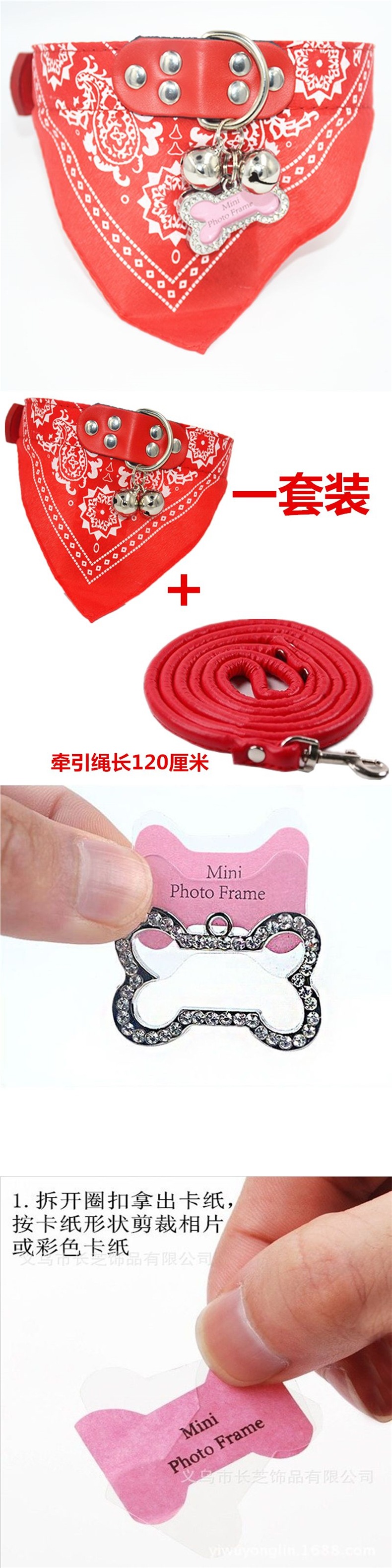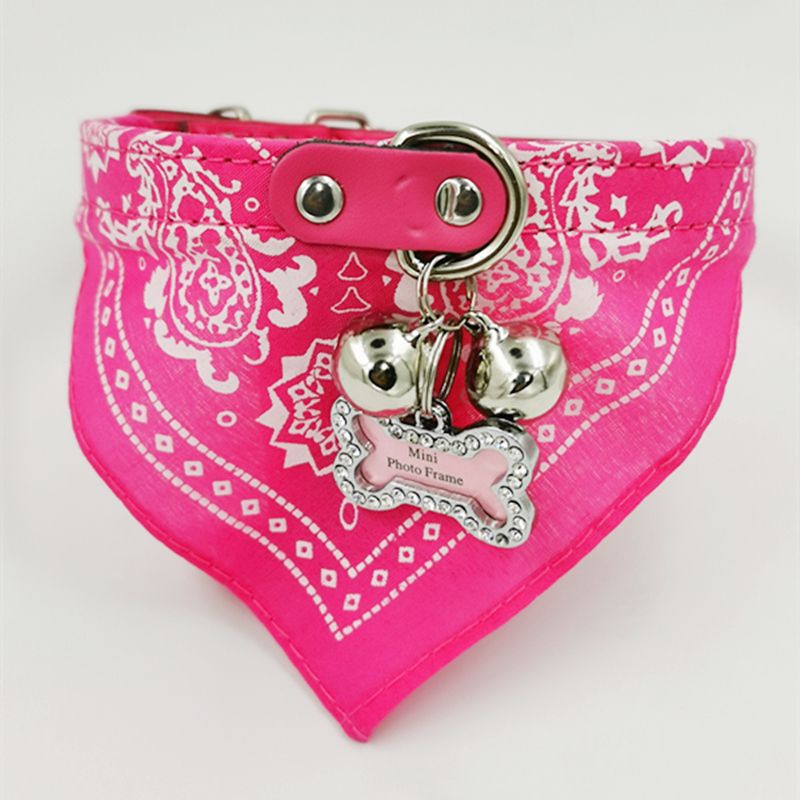 Color: Rose red triangle scarf (with bell dog tag) + leash
