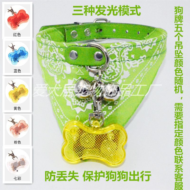 Color: Green bell-less triangle scarf + luminous dog tag (random)