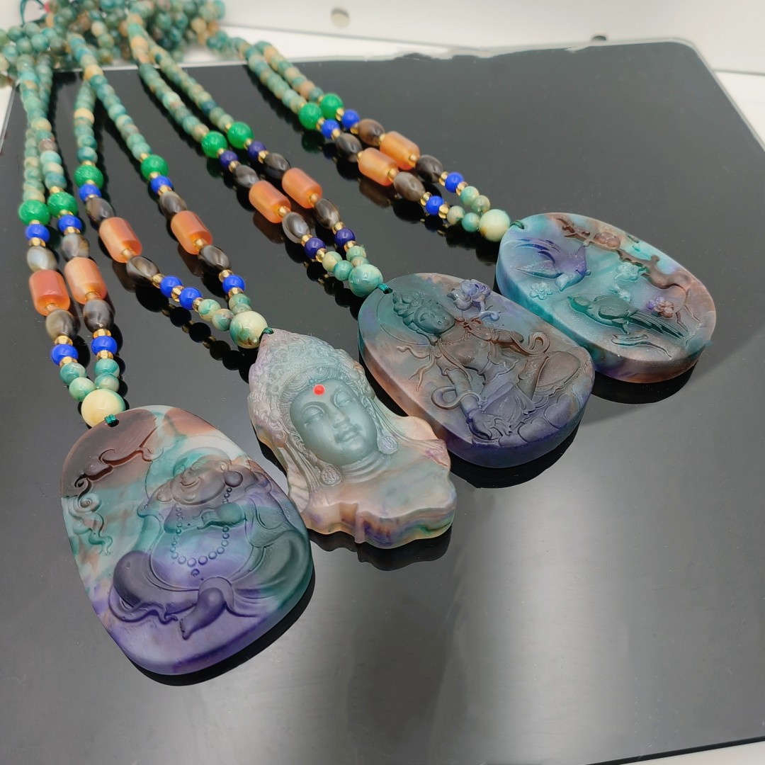 【商品尺寸】山水牌65*40*12mm 普贤65*46*12mm 笑佛65*45*12mm 度母观音64*41*18mm 观音像68*39*14mm 牡丹花68*47*20mm 龙牌67*46*16mm 飞鸟梅花65*43*11mm 喜上眉梢64*51*14mm 链子约65cm(人工测量,存在误差,以实物为准,介意者慎拍)