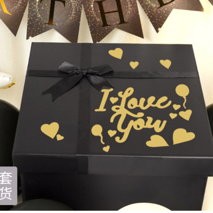 Color: Black gift box + i love you + lamp raffia