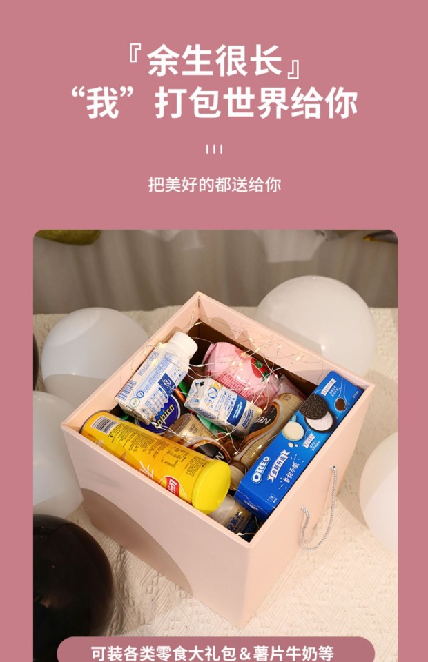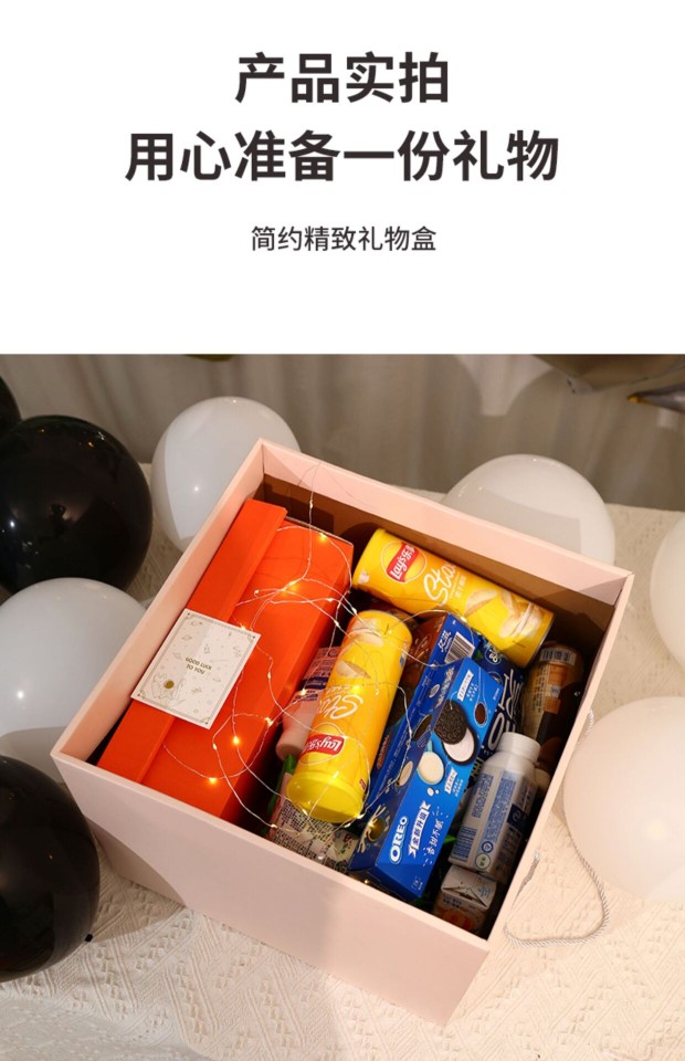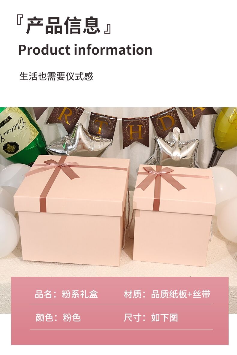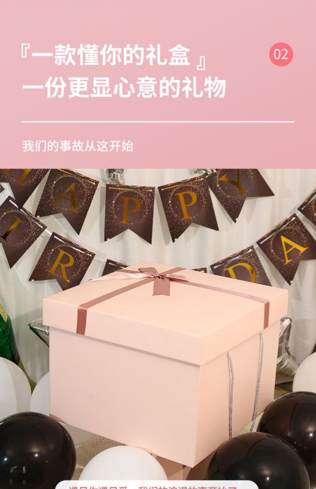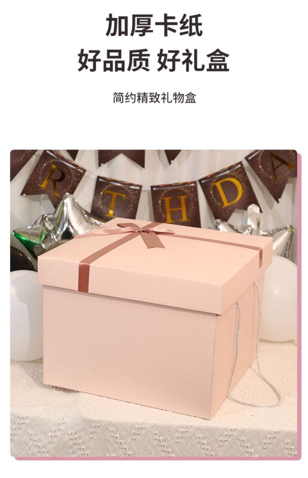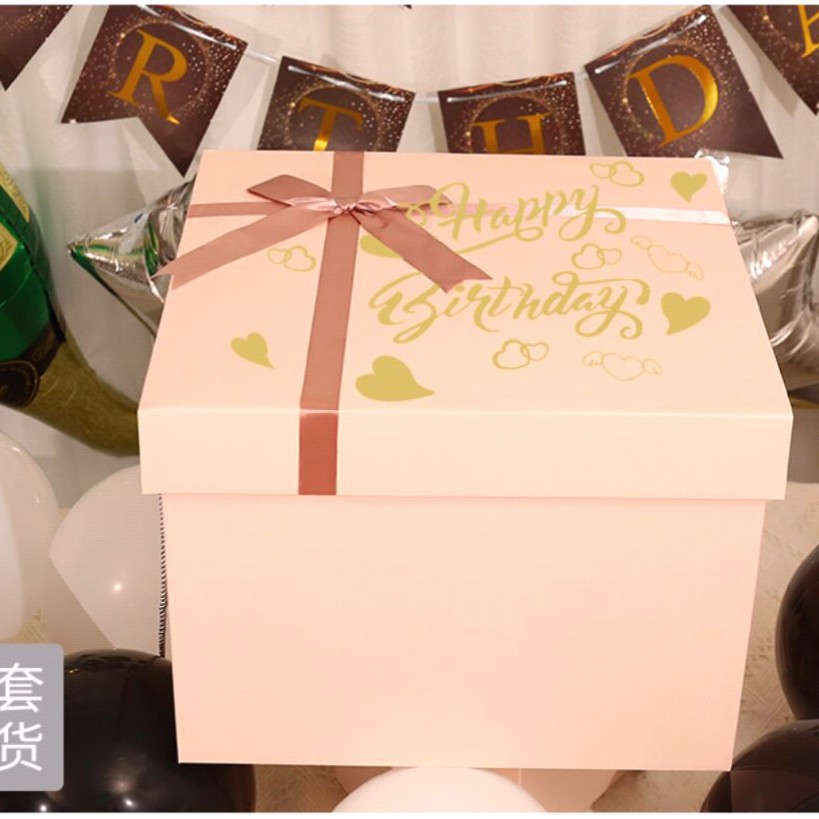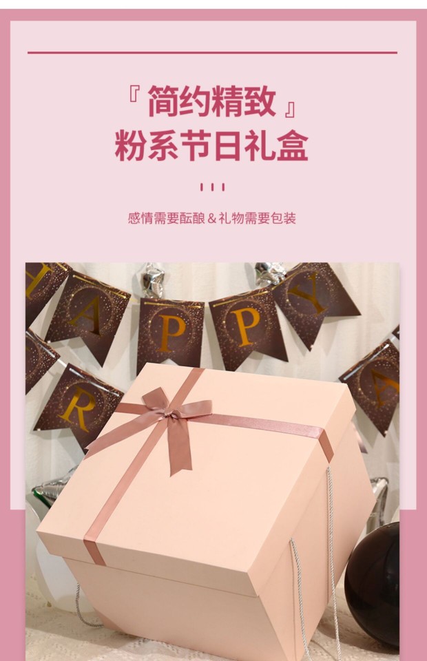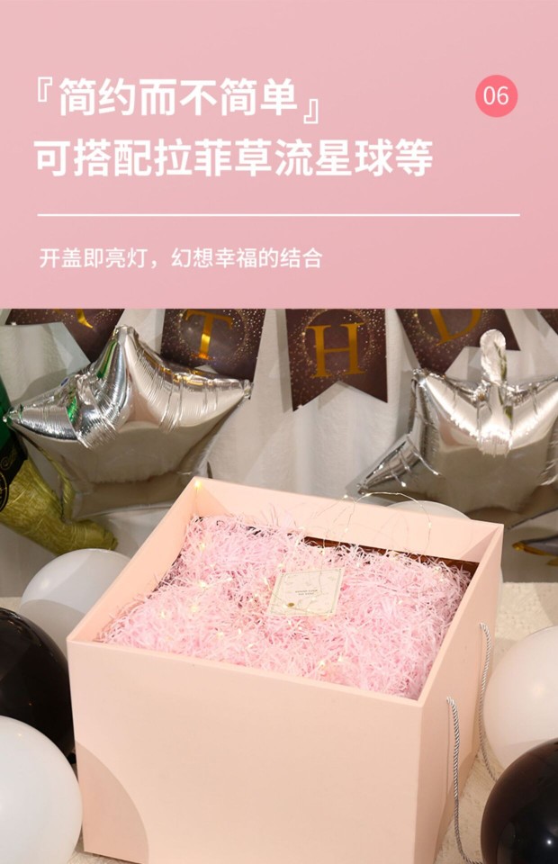 Color: Pink gift box + happy birthday + touch light raffia