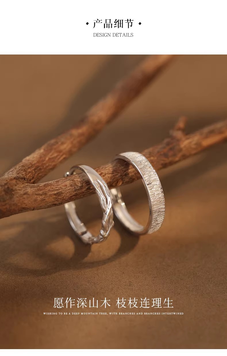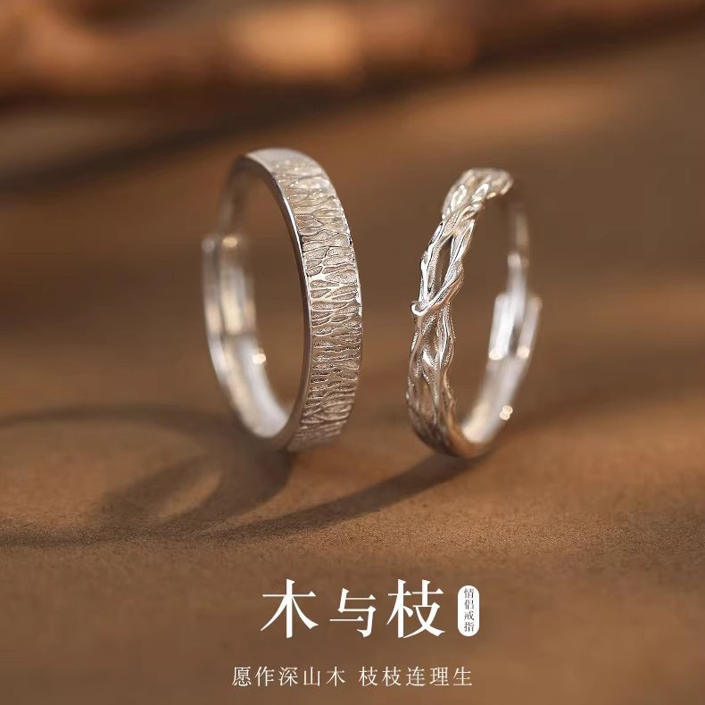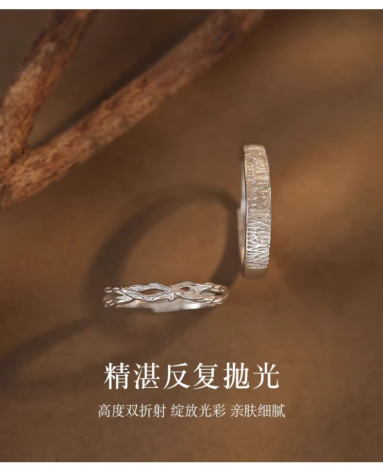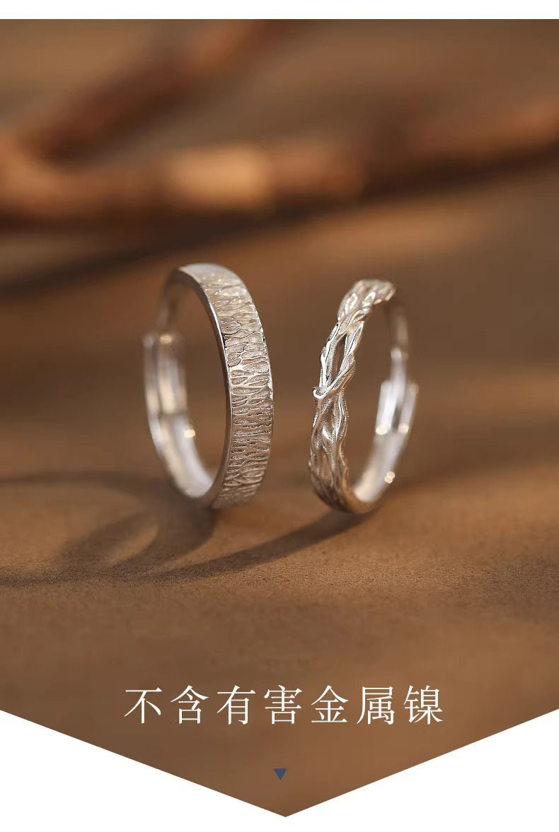 S999 Pure Silver Wood and Branch Couple Rings for Men and Women, a Pair of Accessible Luxury Niche Design Versatile Forest Couple Rings