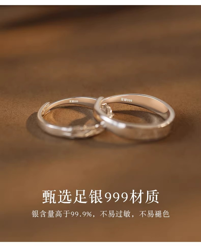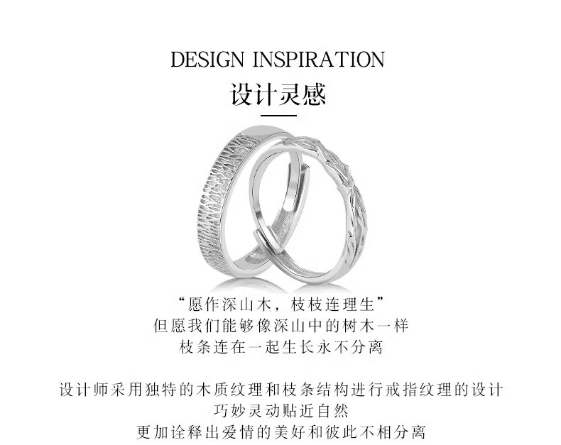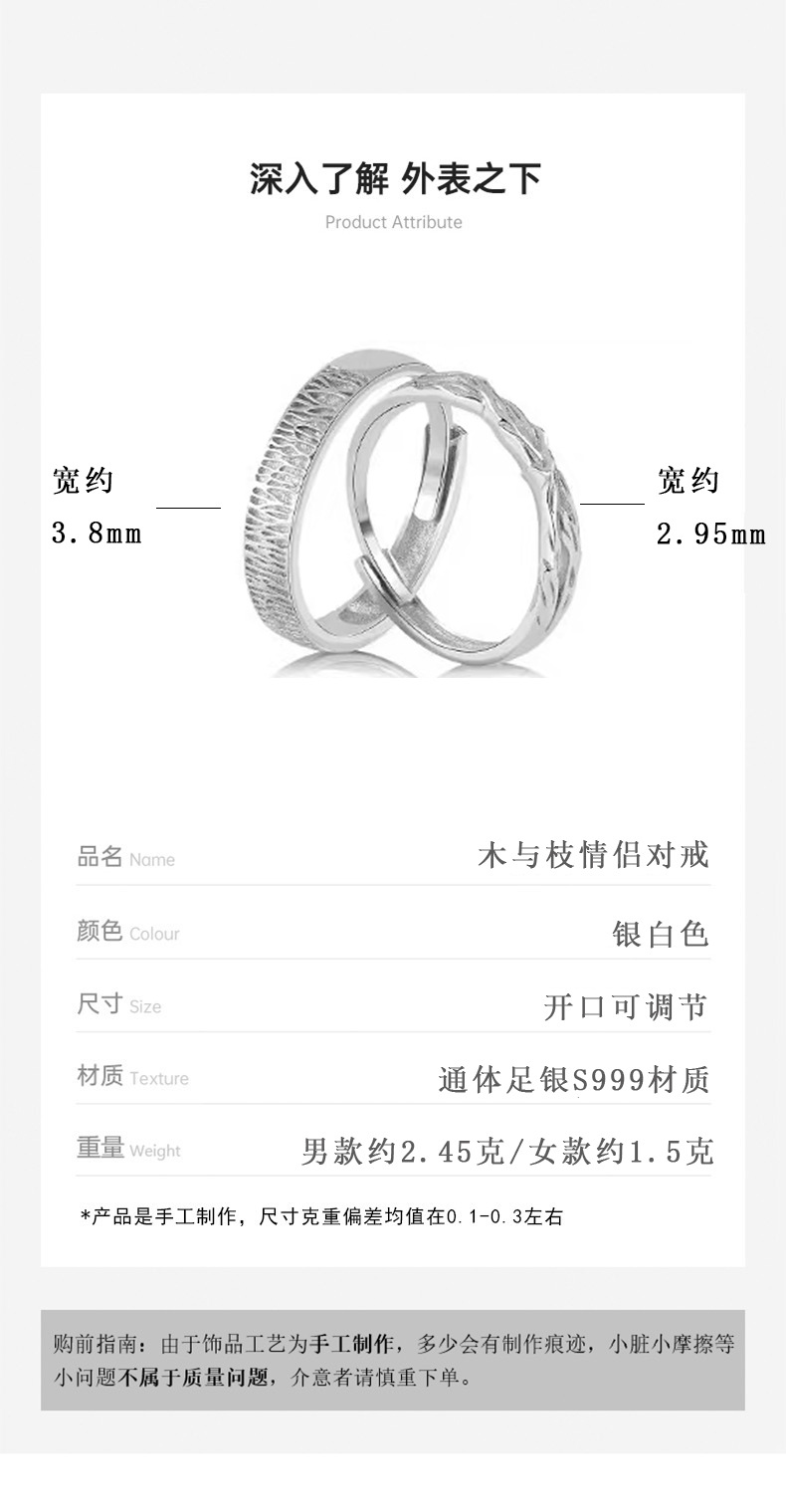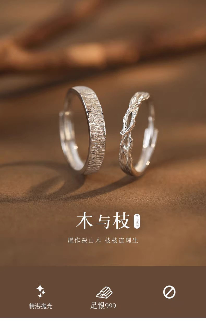 S999 Pure Silver Wood and Branch Couple Rings for Men and Women, a Pair of Accessible Luxury Niche Design Versatile Forest Couple Rings
