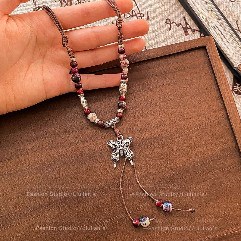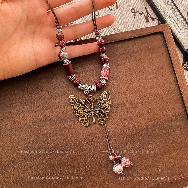 Color: Ceramic beaded copper butterfly necklace - about 102cm