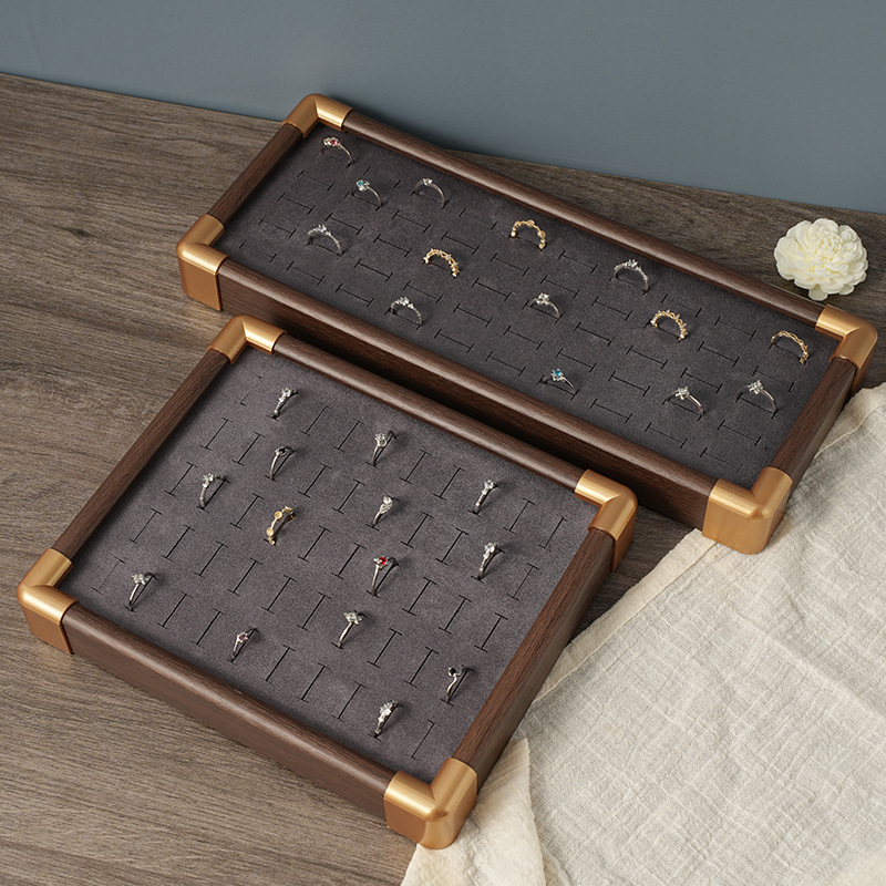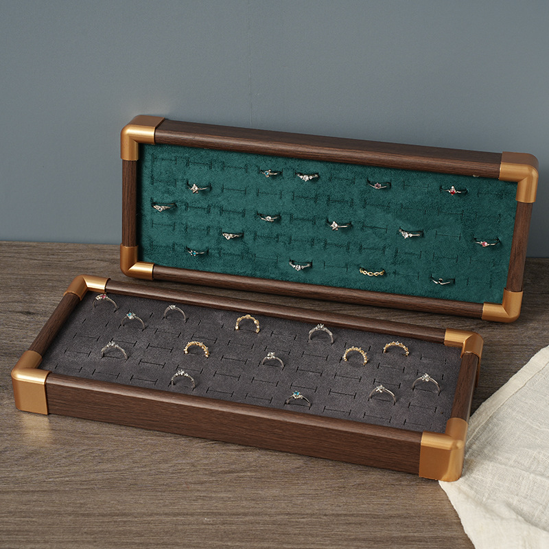 Wooden Ring Display Tray Jewelry Organizer Storage Tray Earring Stud Velvet Storage Box Wholesale Jewelry Stand Solid Wood