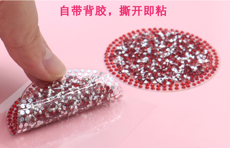Cross-Border Exclusive Breast Patch, No Residue Glue, Black and Red Round Shiny Diamond Breast Patch, Music Festival Stage Disposable Breast Patch