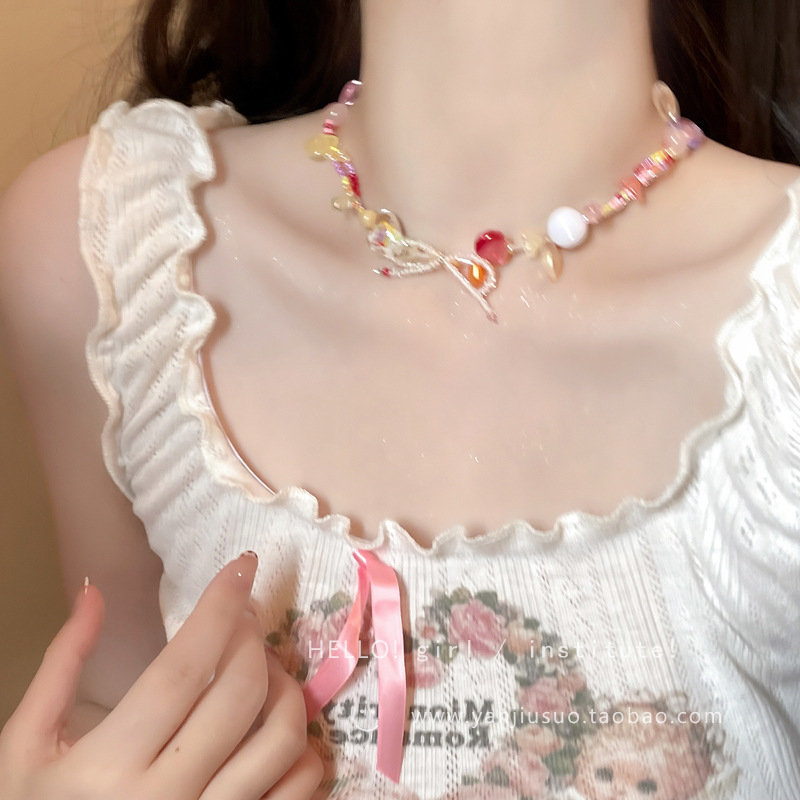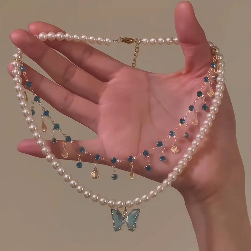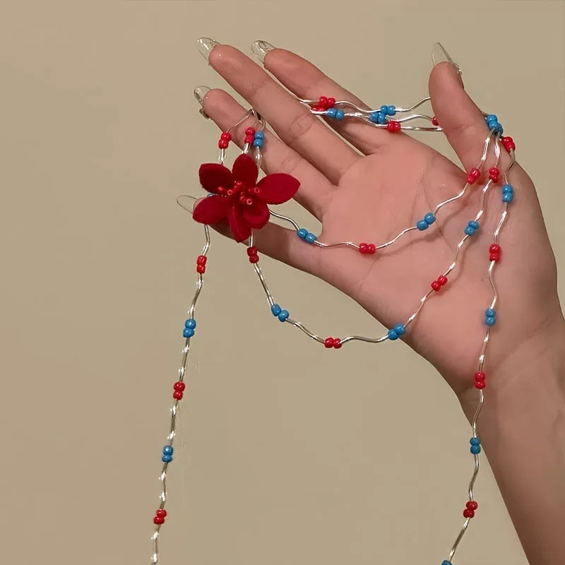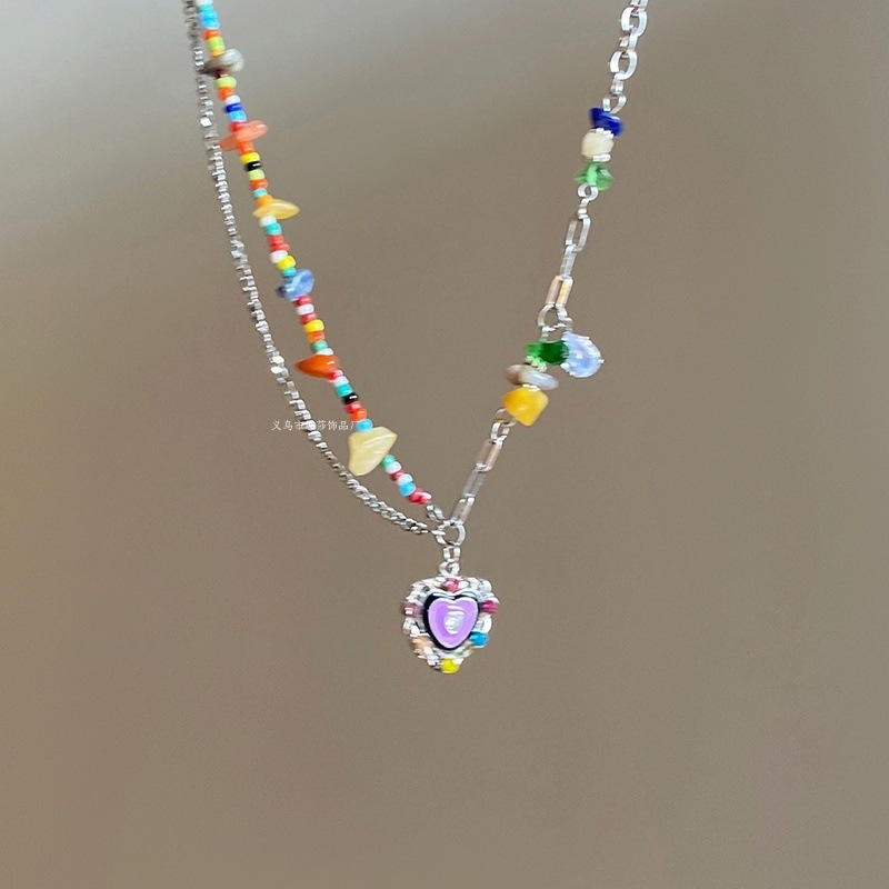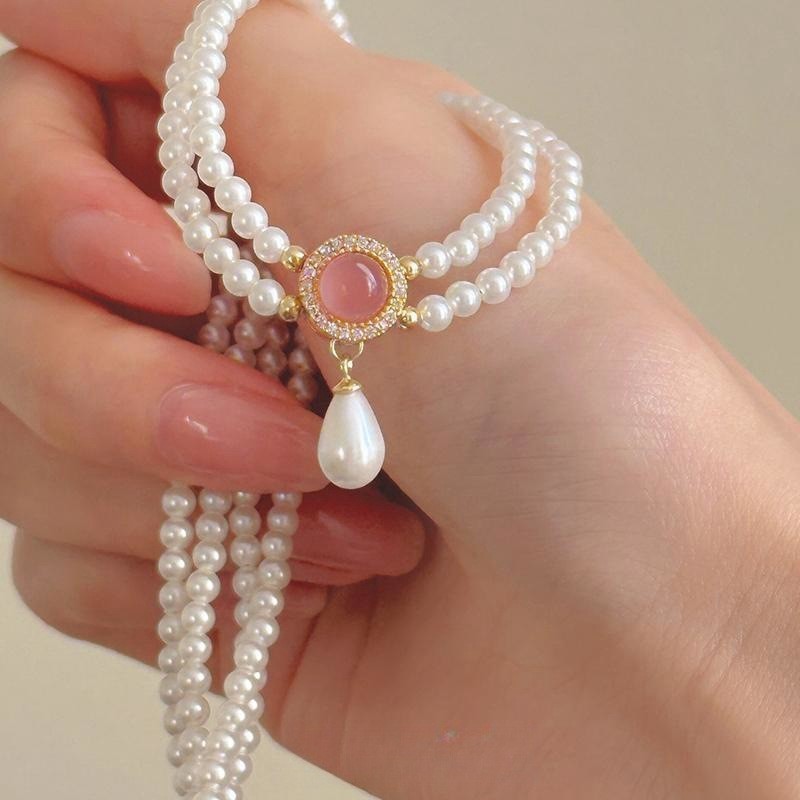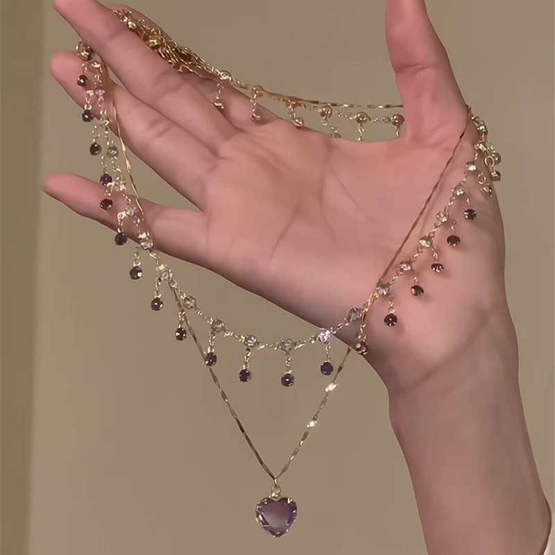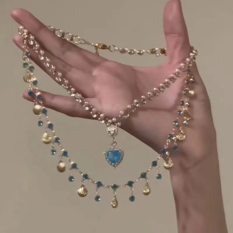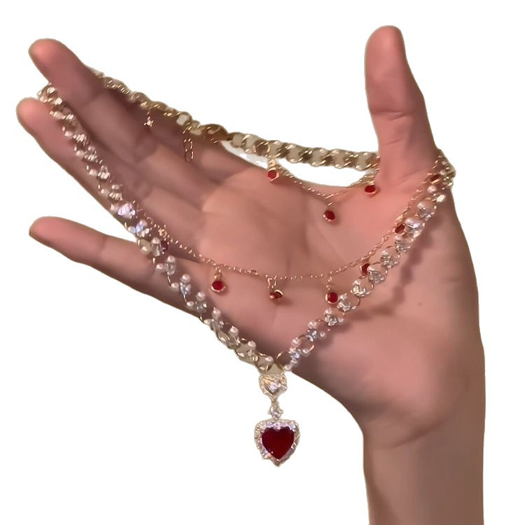 "Shining Heart" Red Heart Pearl Stacked Necklace, Accessible Luxury Niche Necklace, Retro Clavicle Chain for Women