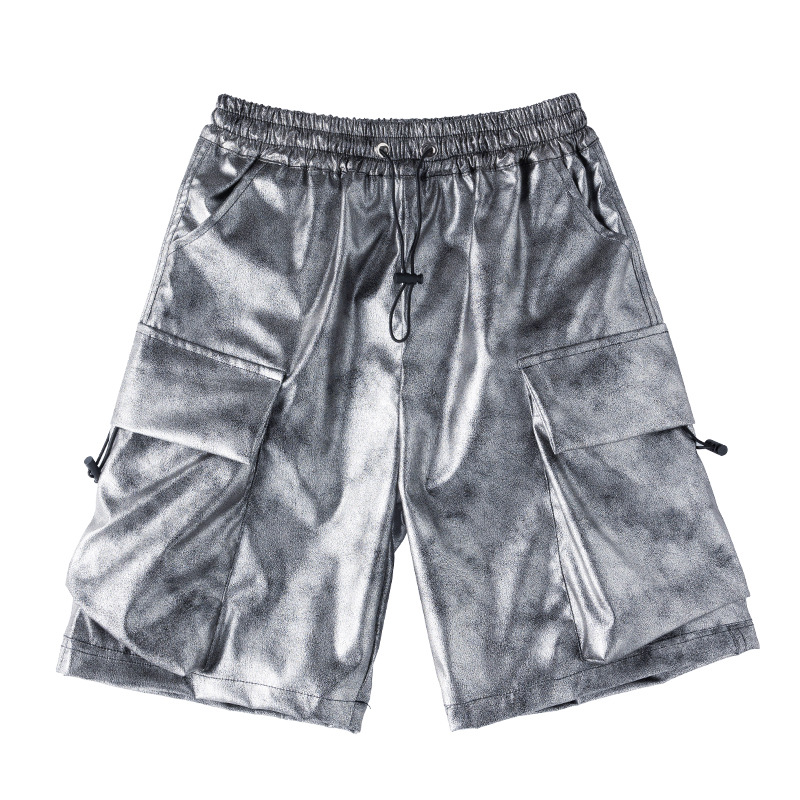 Color: Single piece b386 silver shiny leather tie-dye cargo shorts