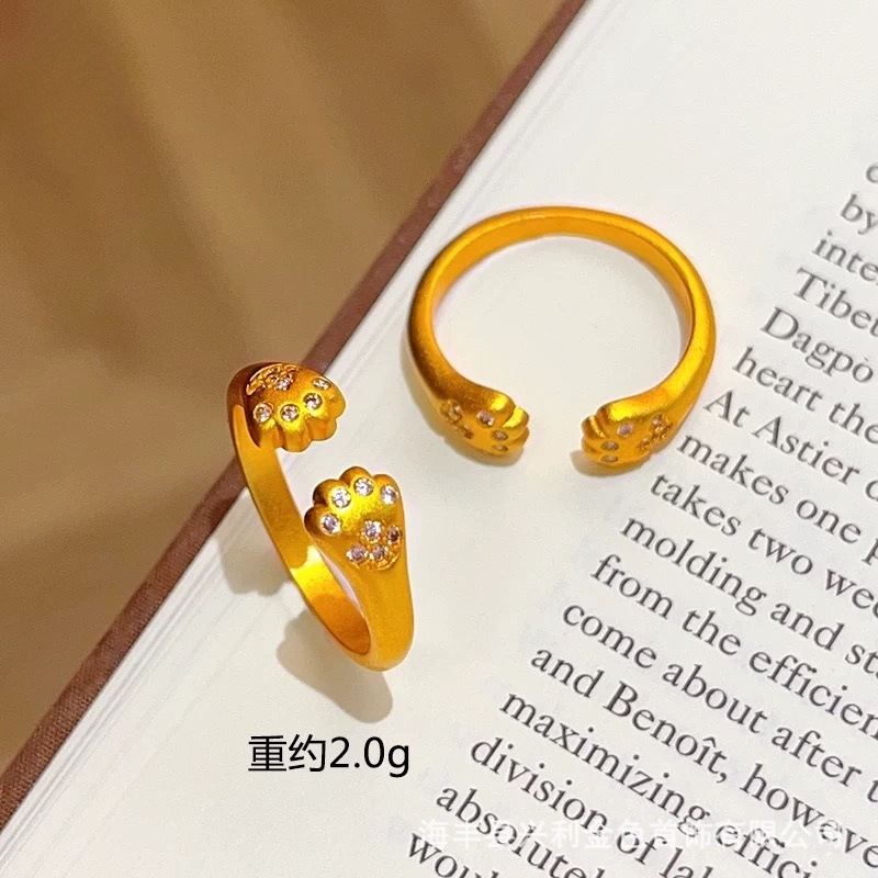 Gold Store Same Style Ancient Gold Dot Diamond Lucky Cat Paw Sweetheart Ring Solid Cute Claw Open Sweet Gift for Girlfriend