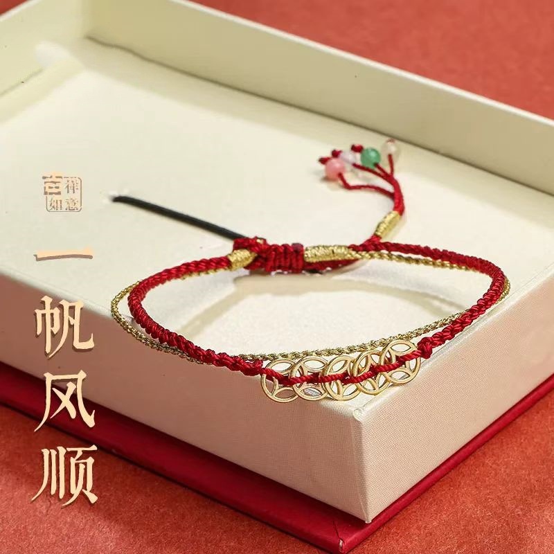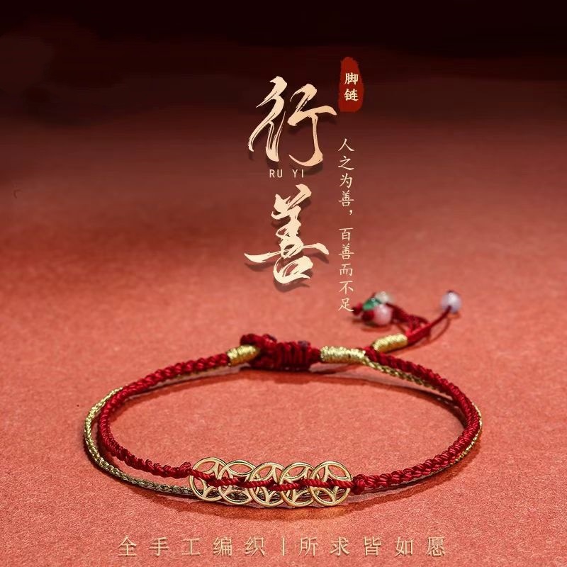 New Five Emperors Money Anklet for Women, Year of the Snake, Zodiac Year, Red Rope Anklet, Women's Fortune-Enhancing Braided Rope, Men's Anklet