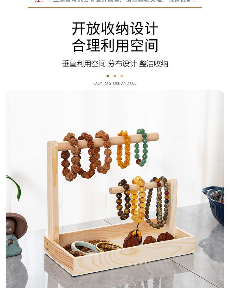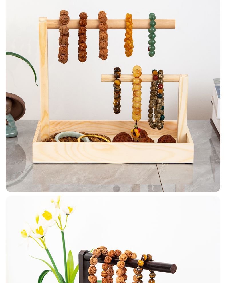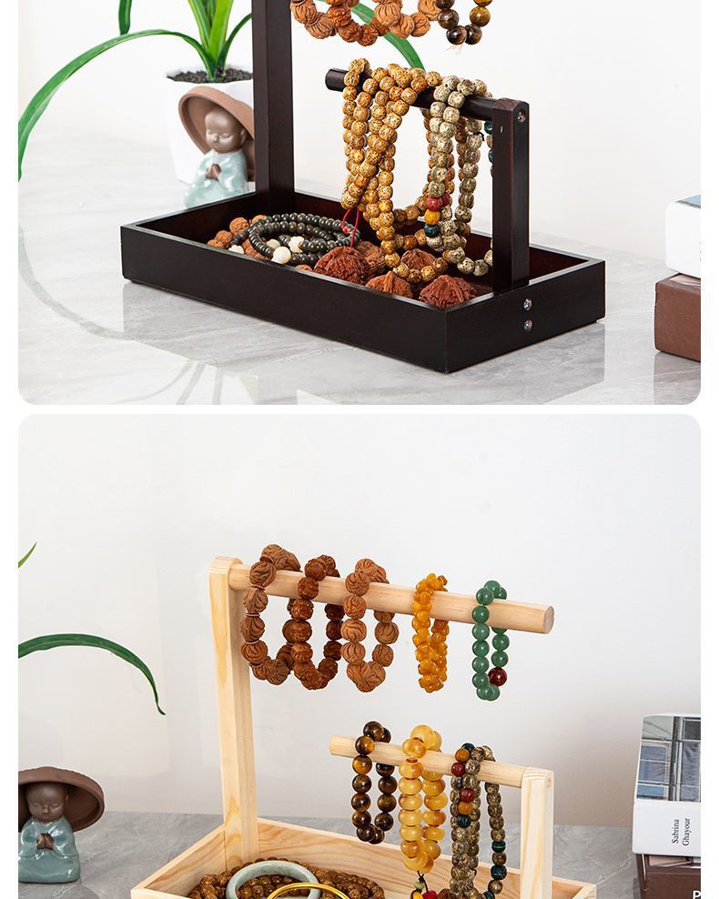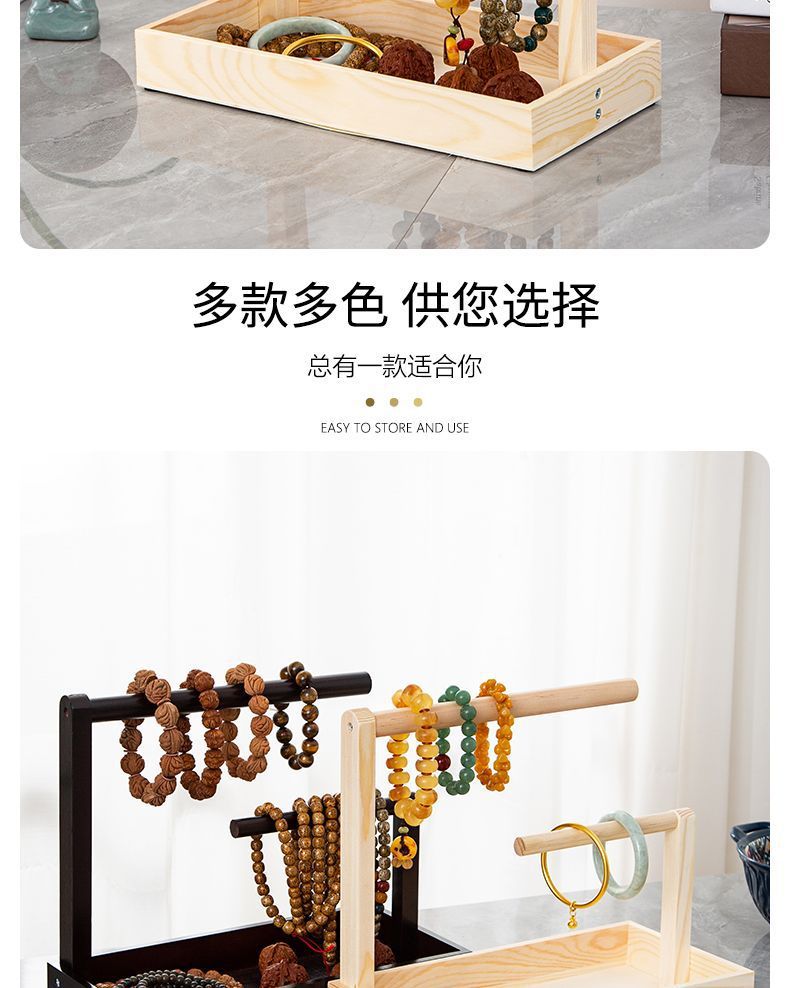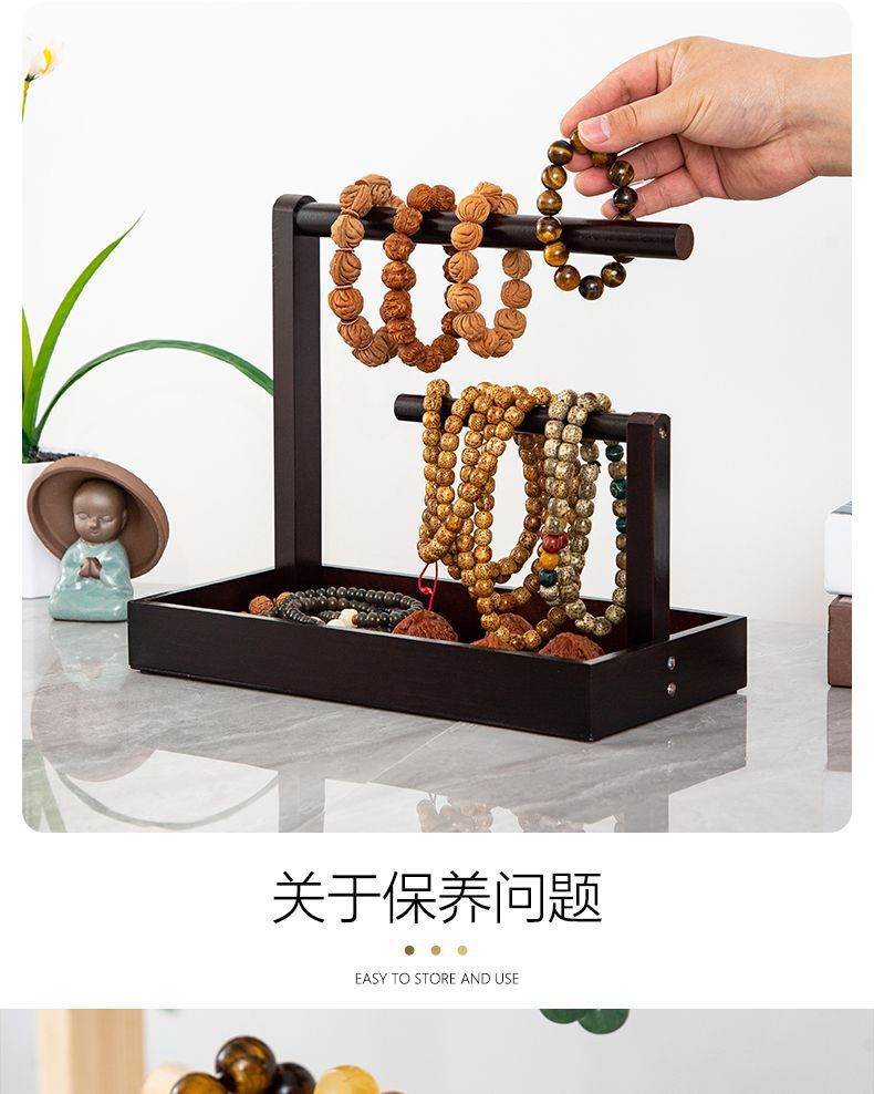 Bracelet Storage Cultural Toy Display Hanging String Rack Solid Wood Bracelet Key Rack Buddha Beads Jewelry Storage Rack Antique Stone Jade Rack