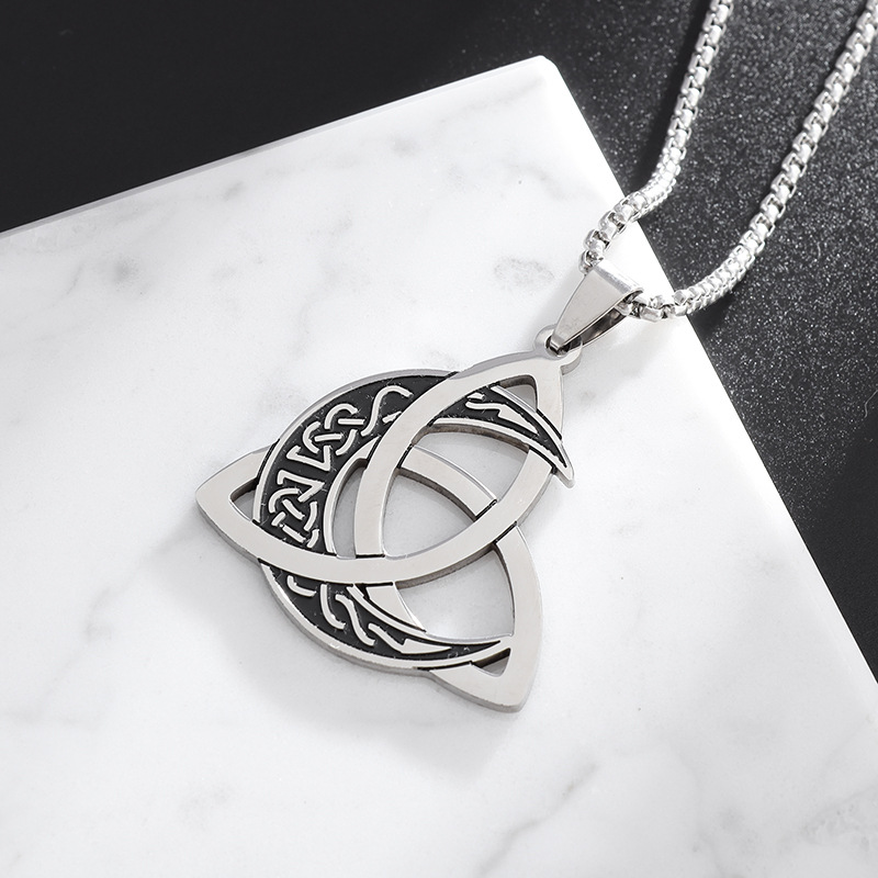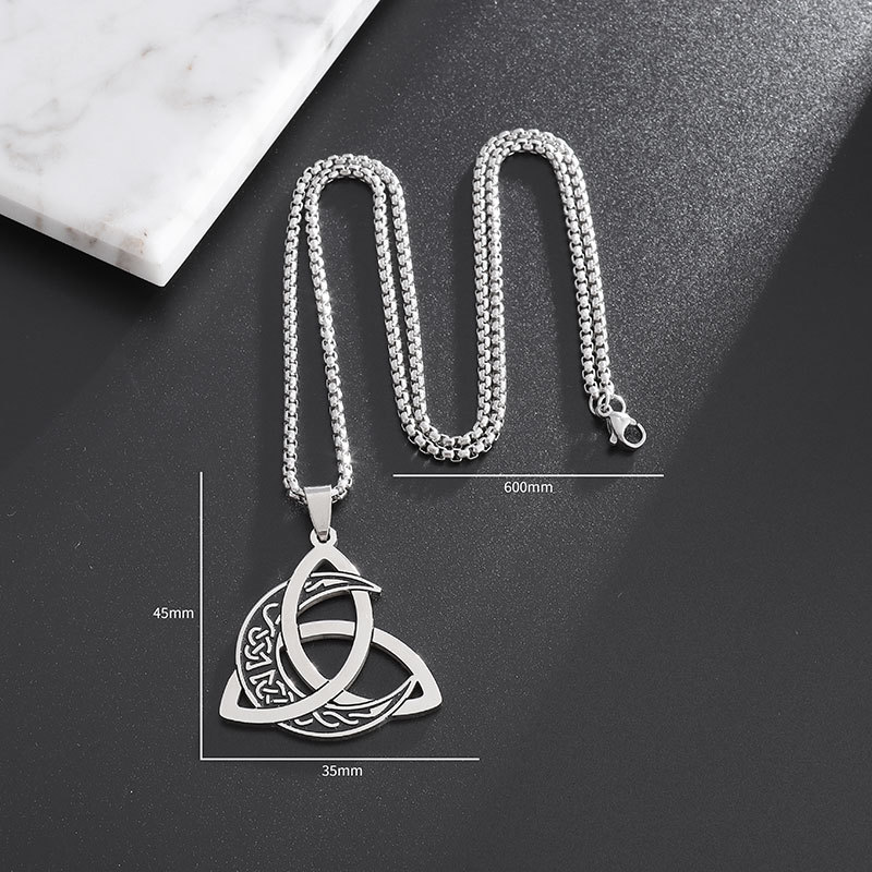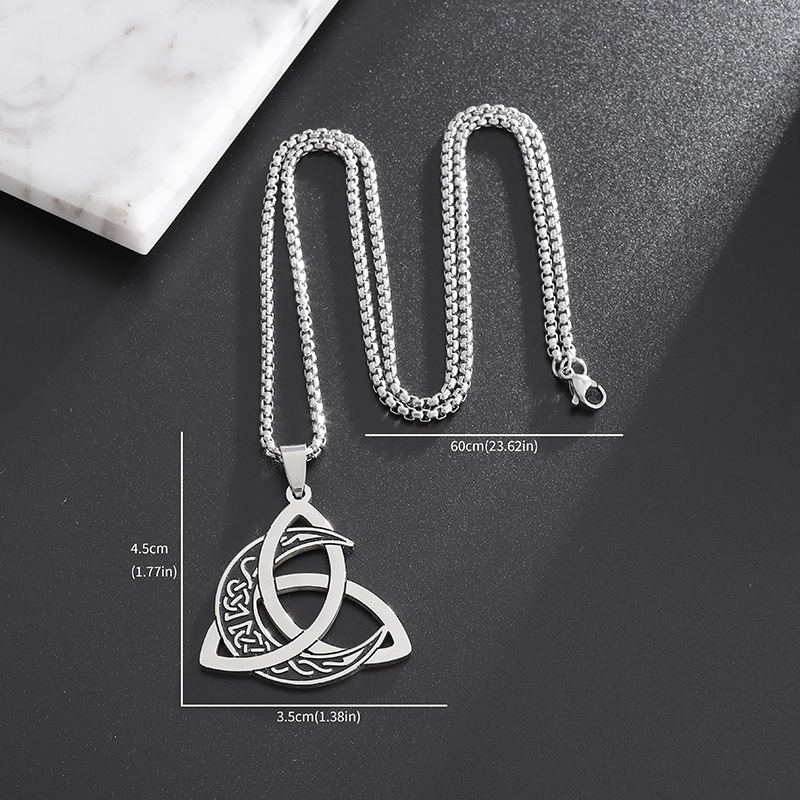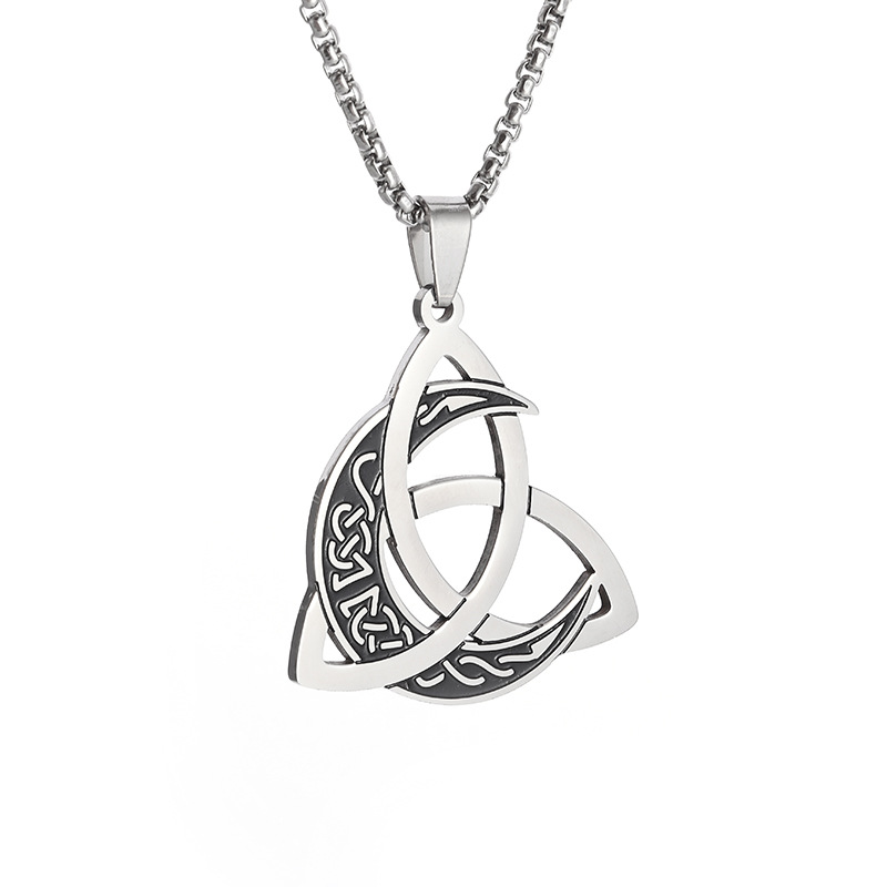 Cross-Border Hot Selling Stainless Steel Viking Triangle Knot Moon Phase Surrounding Necklace Titanium Steel Men's Triangle Pendant Factory Direct Sale