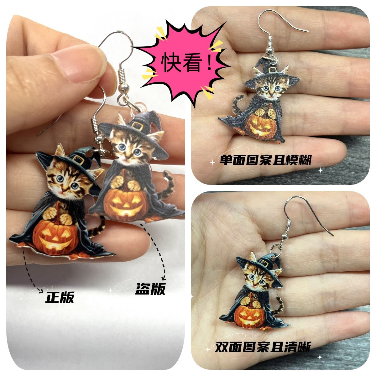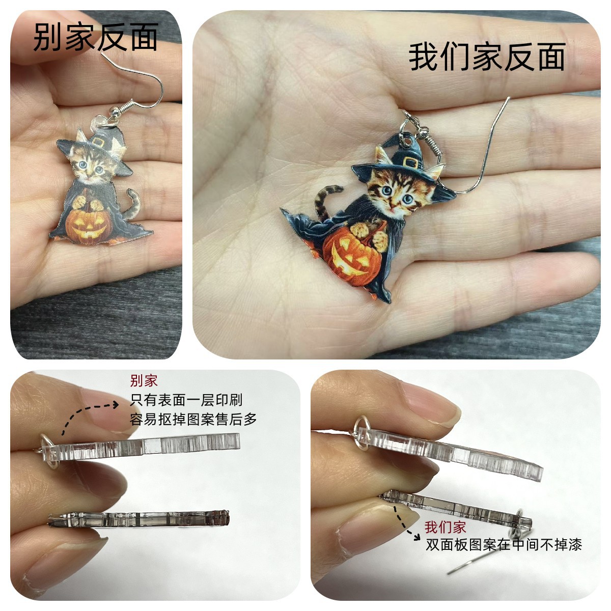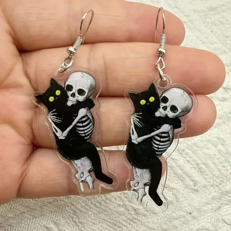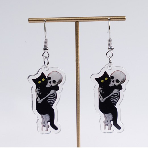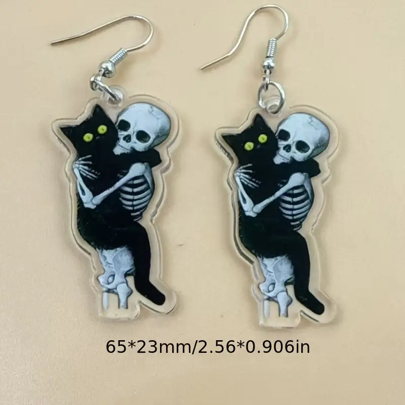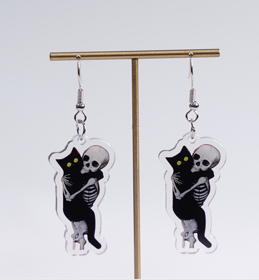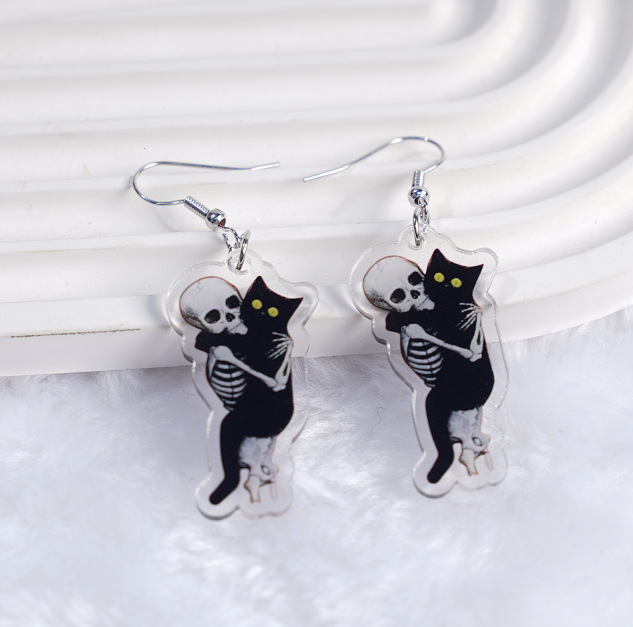Cross-Border Hot-Selling Skull Cat Earrings Halloween Jewelry Flat Acrylic Horror Personality Exaggerated Skull Earrings