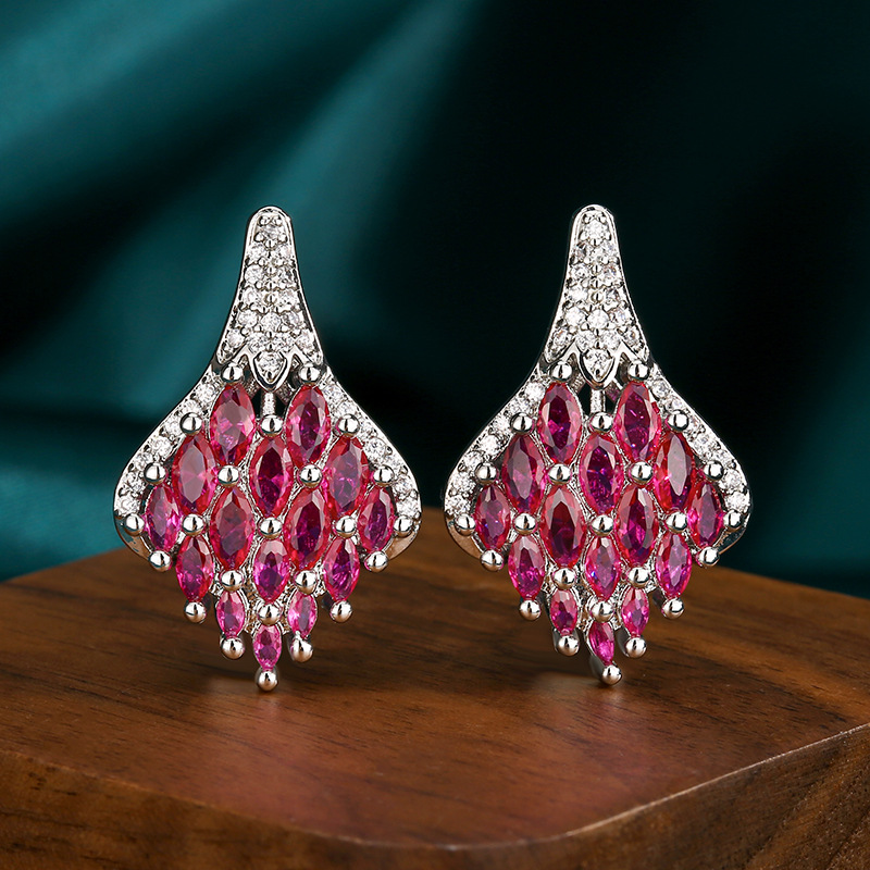 Set Necklace Earrings Jewelry Colorful Gemstone Red Corundum Fashion High-End Jewelry Light Luxury Women's Wholesale Goods