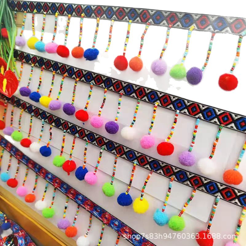 Lace Accessories Ethnic Style Colorfulful Small Fur Ball Cross Pendant Handmade Beading Tassel Han Dynasty Shoes and Hats Accessories