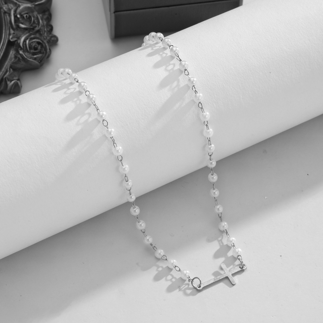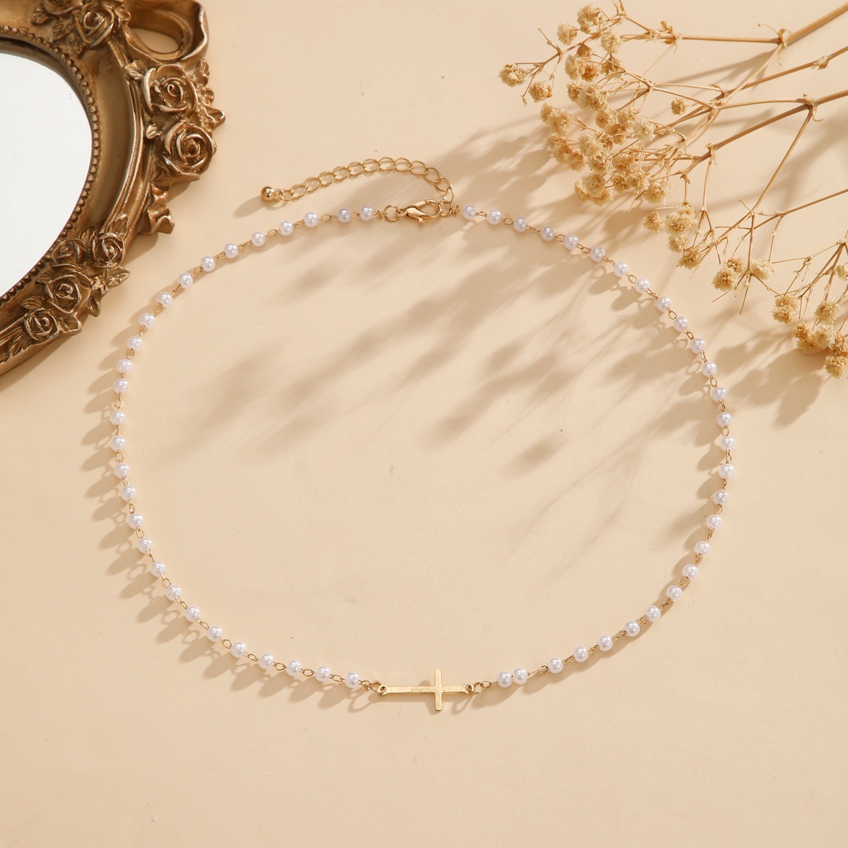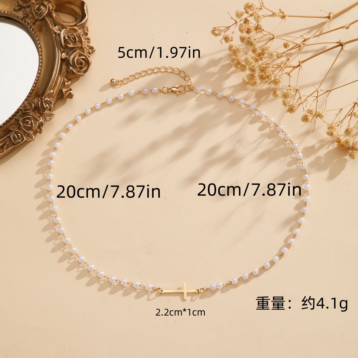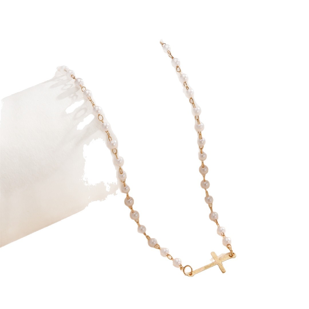 New Cross-Border Bohemian Style Retro Handmade Pearl Chain Neck Jewelry for Women Versatile Simple and Exquisite Cross Necklace