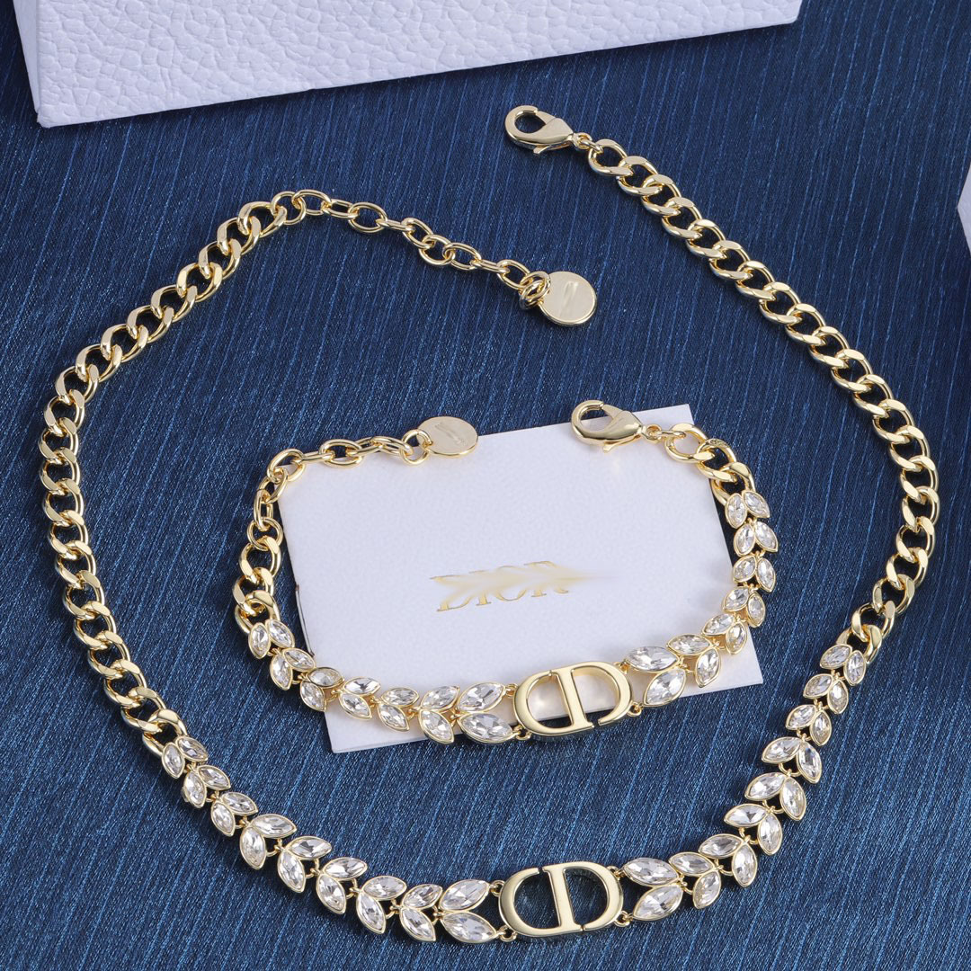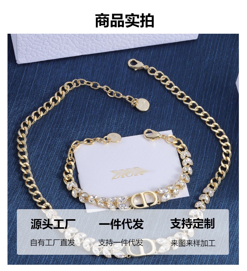 2025 Dijia New Cd Letter Diamond Pendant Necklace Bracelet D Family Popular New Wheat Necklace Set for Women