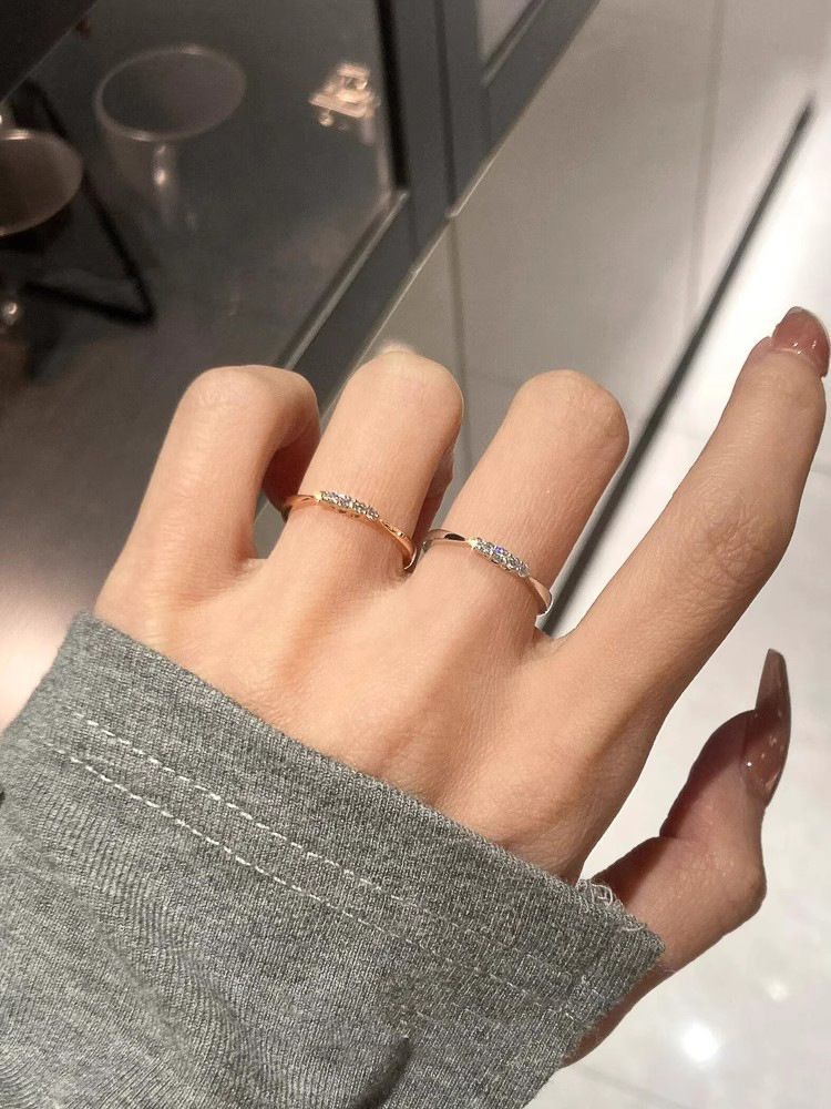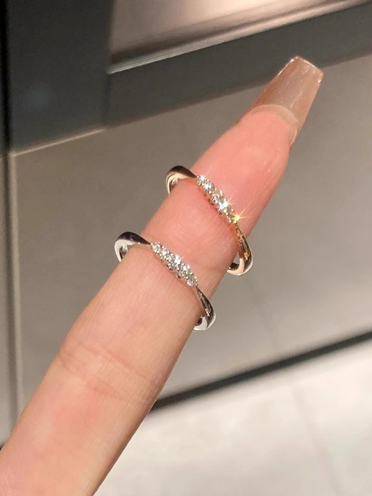Wholesale Adjustable Open-Ended Rings with Starry Sky and Diamond Arrangements, Light Luxury, Simple, Niche, Versatile, Sparkling Diamond Index Finger Rings
