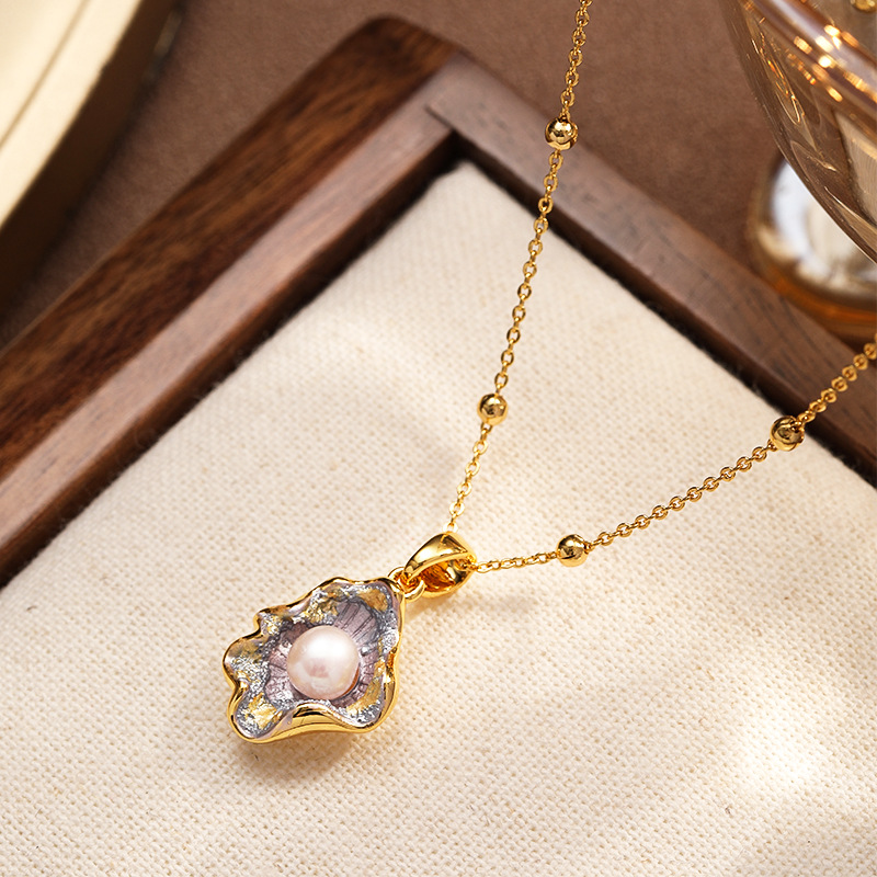 Color: [copper plated with 18k real gold + inlaid with freshwater pearls]: nl04826n-pp