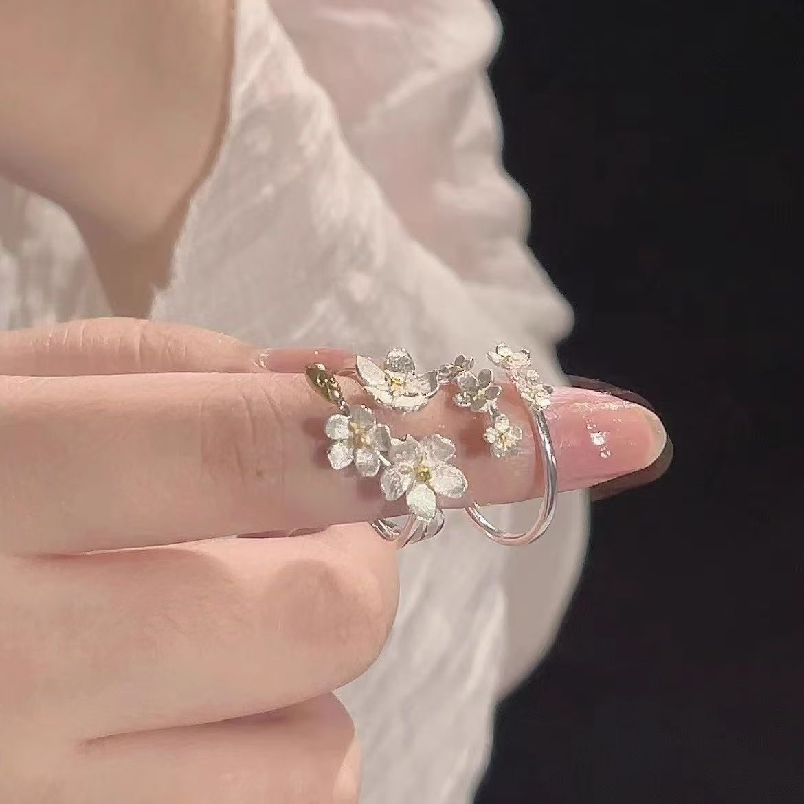 2025 New Three-Dimensional Flower Jasmine Ring Iris Ancient Style French Retro Palace European American Style