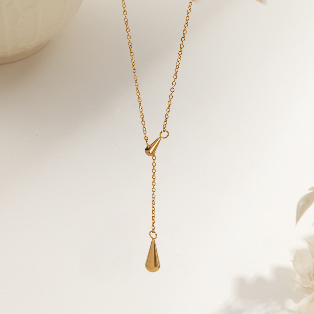 Minimalist European and American Style Water Drop Necklace for Women, Niche K Gold Light Luxury High-End Fashion Temperament Collarbone Chain