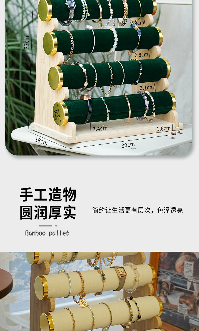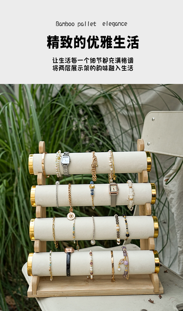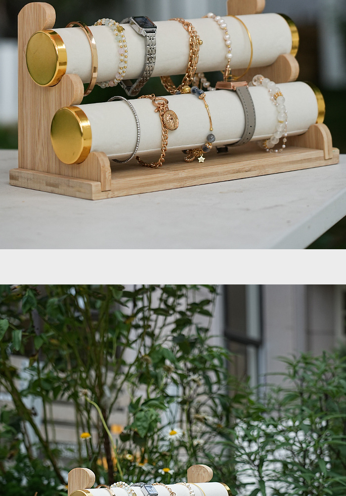Color: Bamboo wood detachable double-layer bracelet stand (rice velvet)