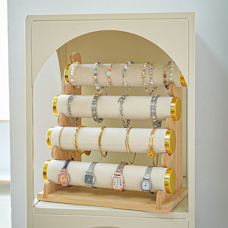 Color: Bamboo wood detachable four-layer bracelet stand (rice velvet)