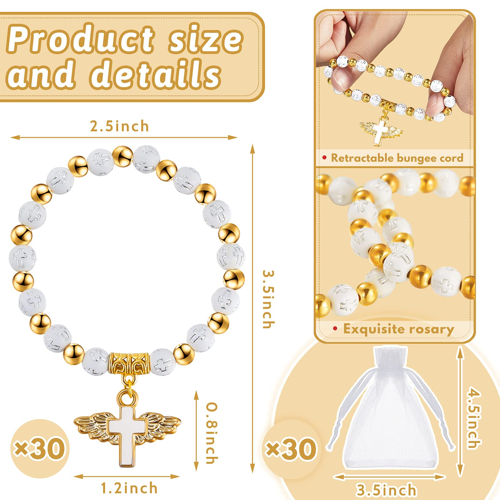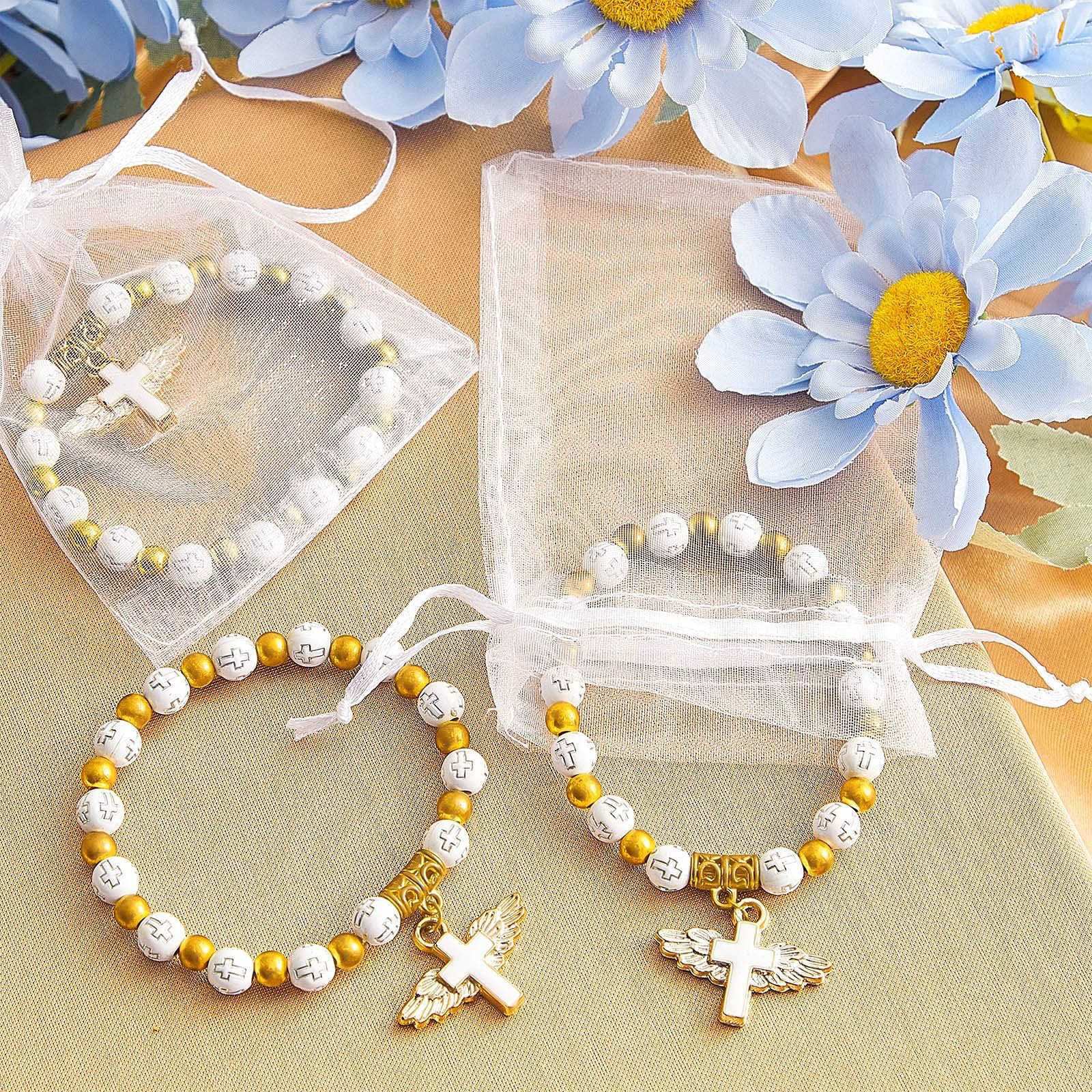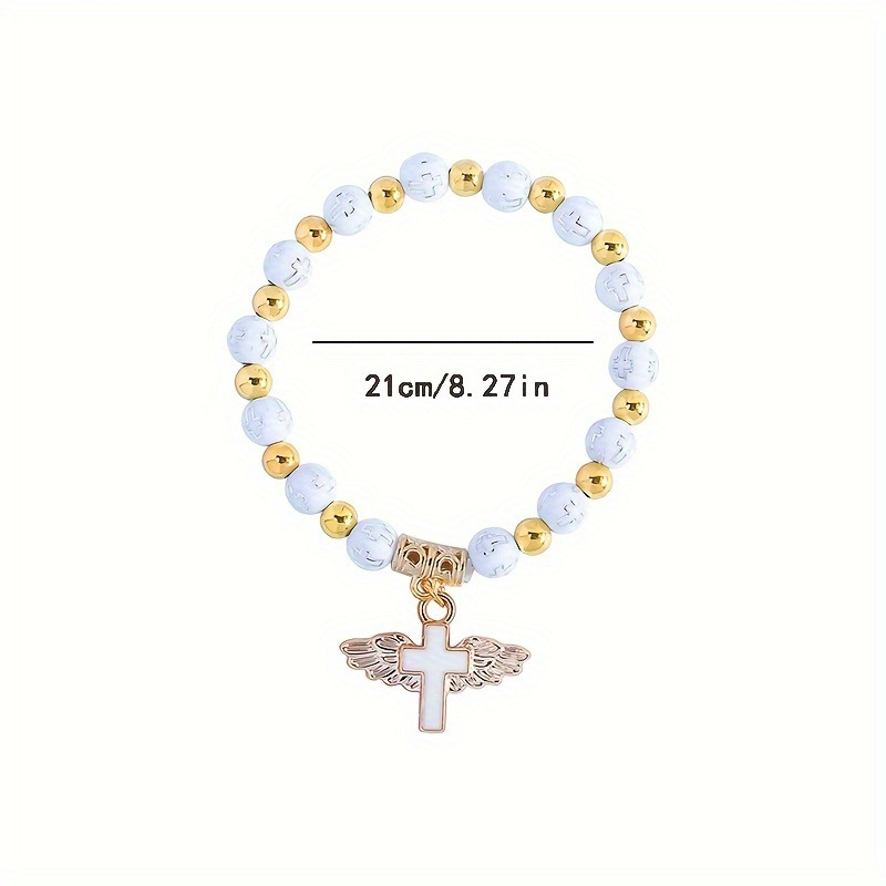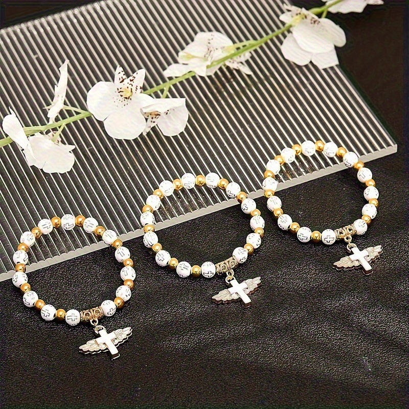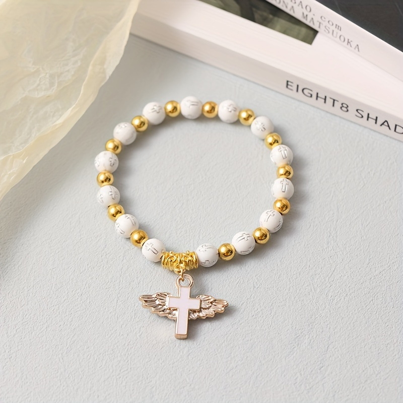 Cross-Border Hot-Selling Heart Wings Cross Baptism Communion Rosary Bracelet Prayer Wedding Party Beaded Handmade