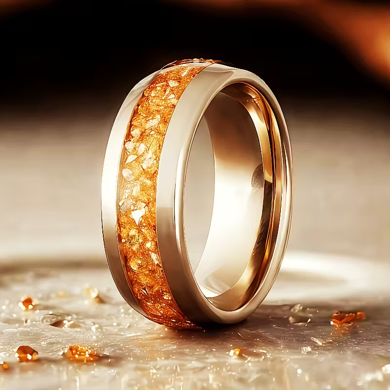Color: Gold background orange twill stainless steel ring