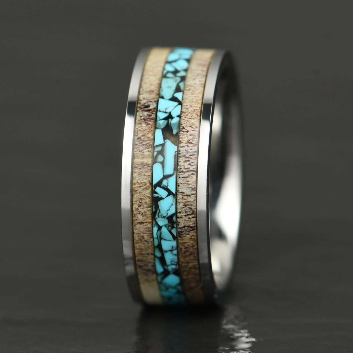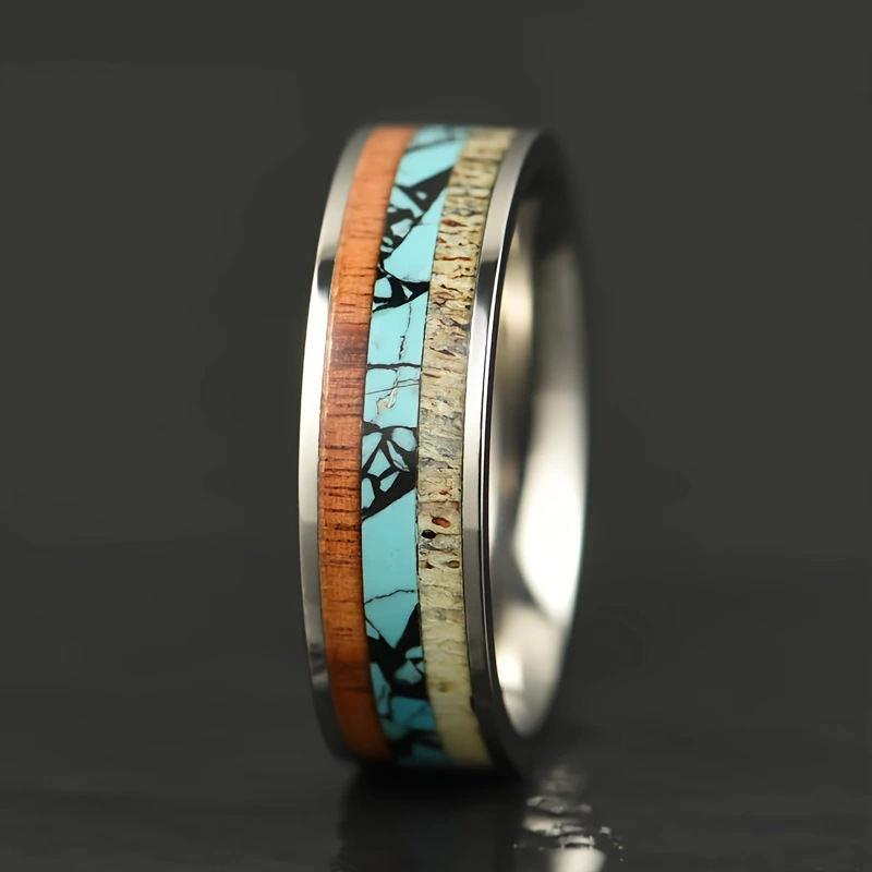 Color: Antler acacia wood turquoise stainless steel ring