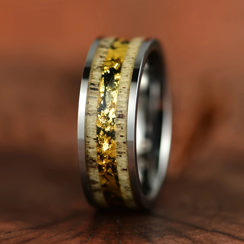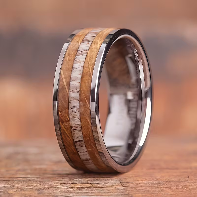 Color: Silver whiskey wood antler stainless steel ring