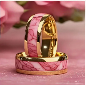 Color: Gold background pink stainless steel ring