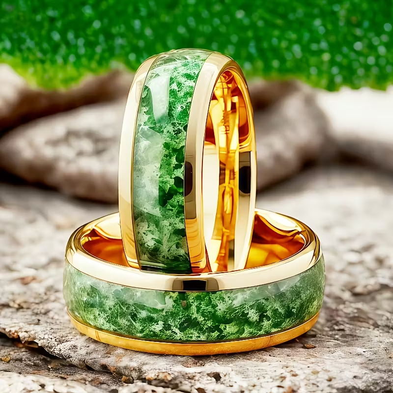 Color: Gold green background stainless steel ring
