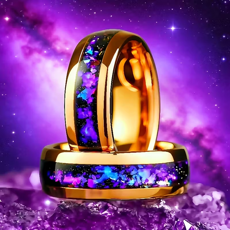 Color: Purple stainless steel ring on gold background