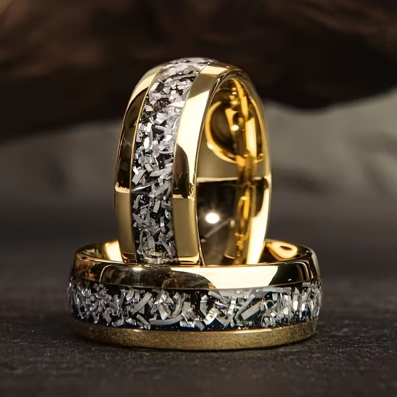 Color: Gold-plated stainless steel ring with black background and silver accents
