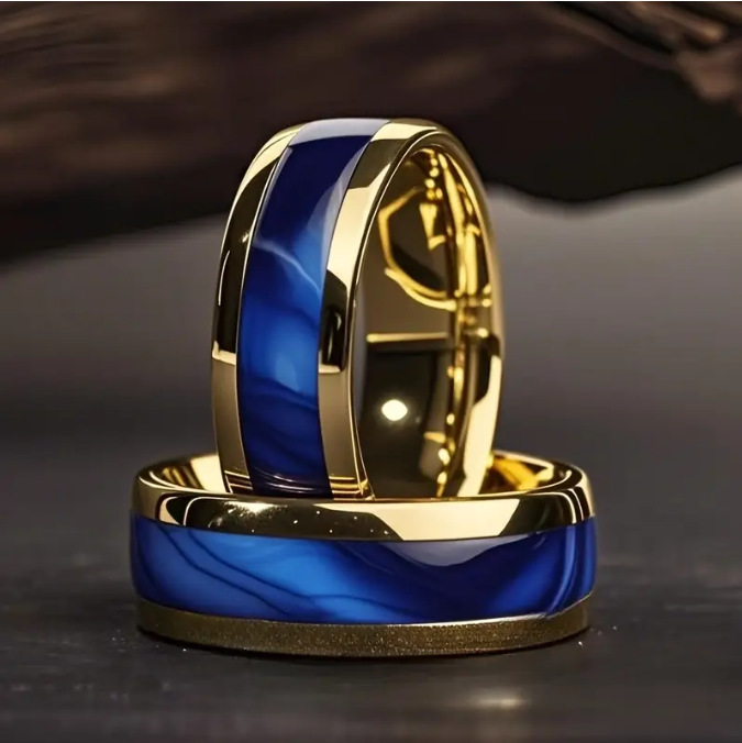 Color: Golden starry sky blue stainless steel ring