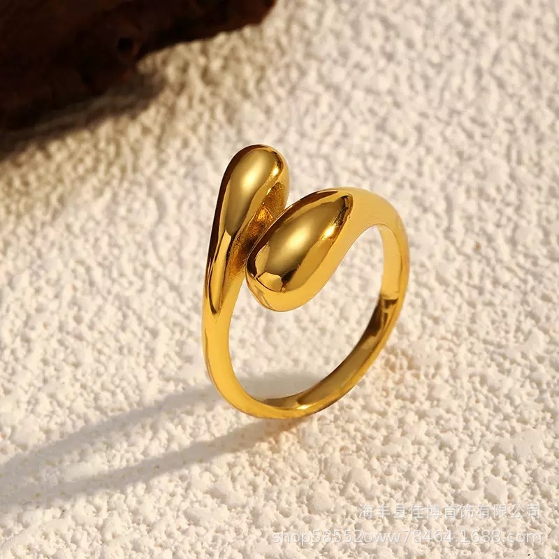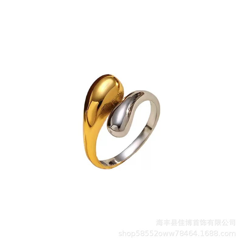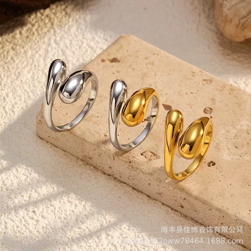 Cross-Border Aliexpress S925 Sterling Silver Water Drop Asymmetrical Ring Opening Adjustable Smooth Ring Cross-Wrapped Ring
