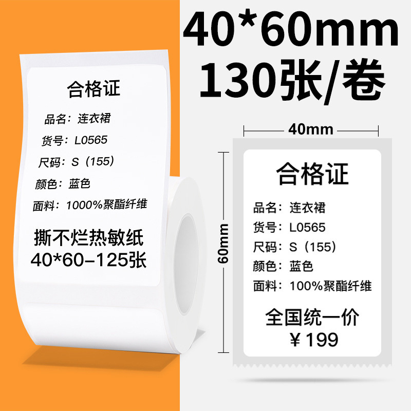 Model: Three-proof white 40*60mm/130 sheets (not tear-proof)