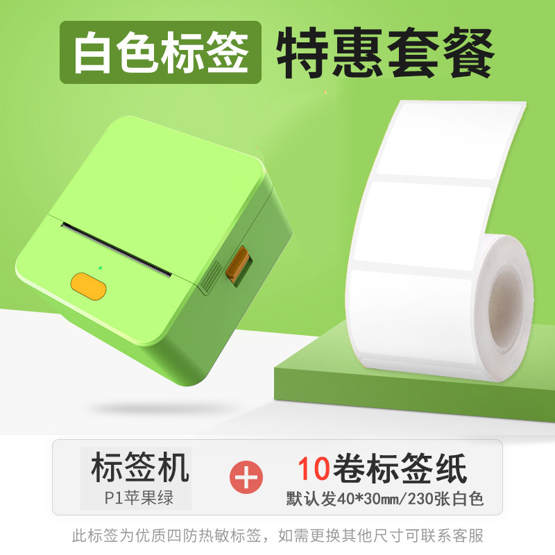 Model: P1 apple green + 10 rolls of four-proof label paper [default 40*30 white]