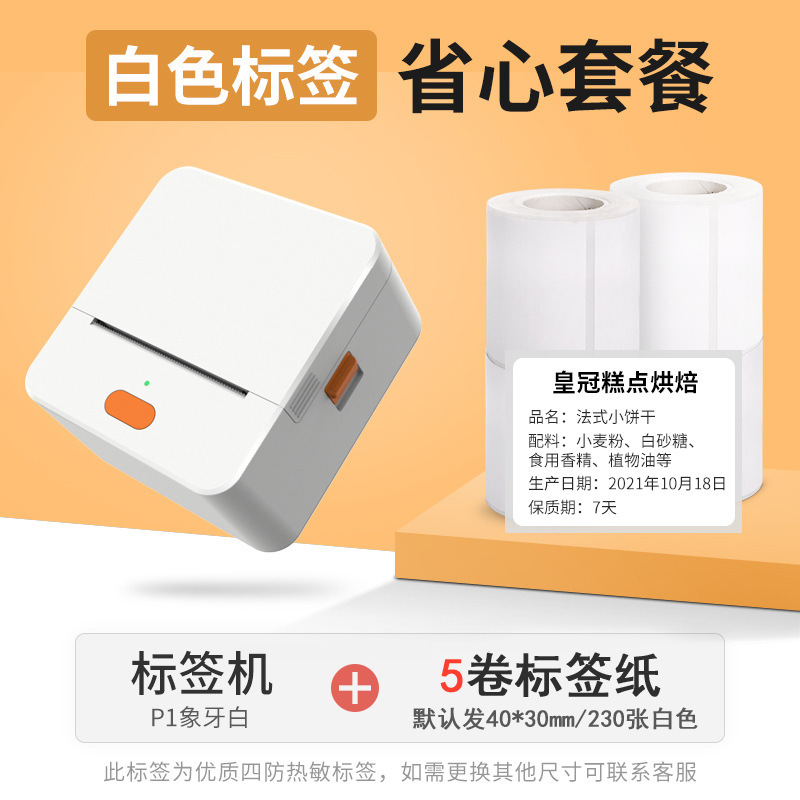 Model: P1 ivory white + 5 rolls of four-proof label paper [default 40*30 white]